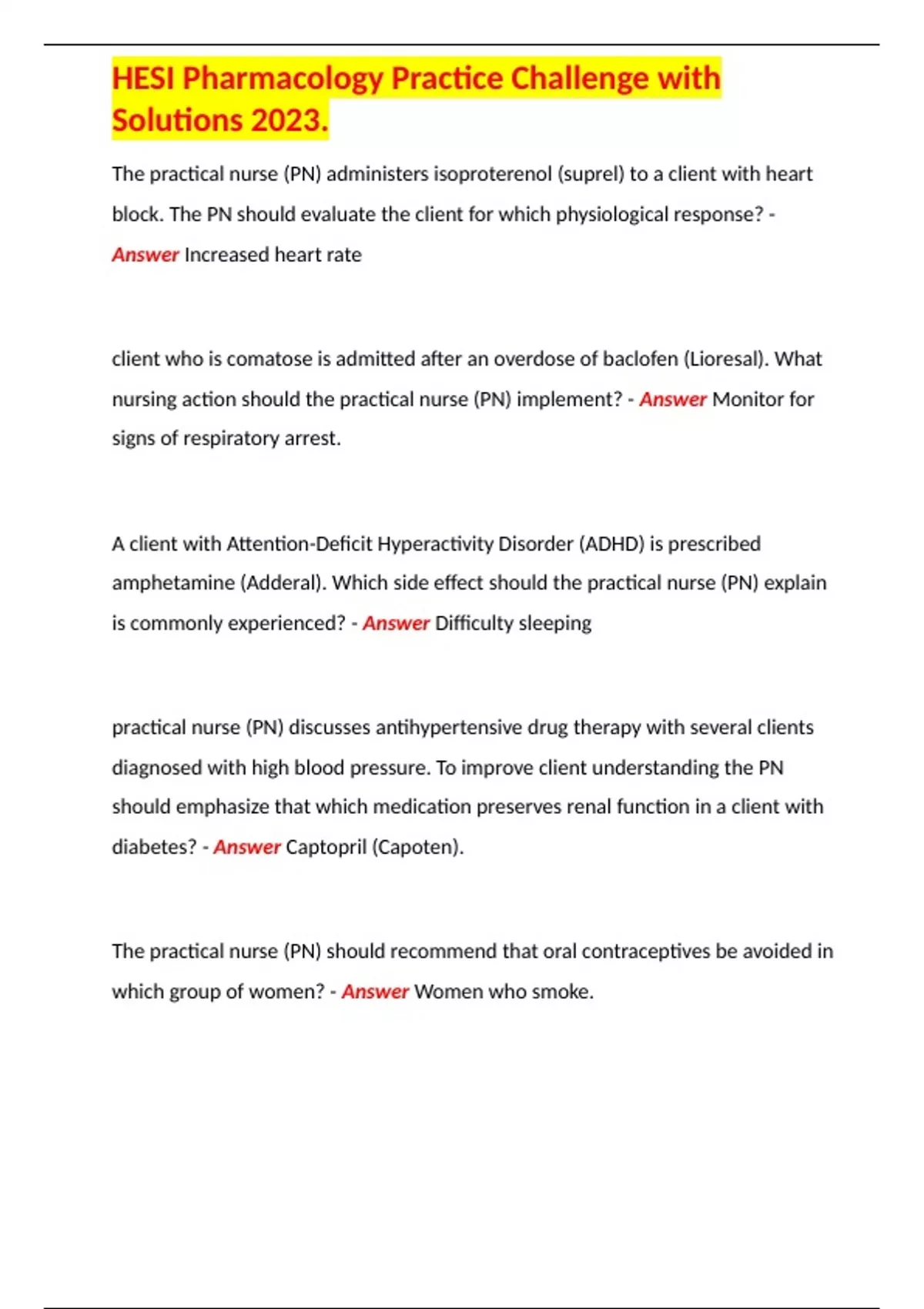 HESI Pharmacology Practice Challenge with Solutions 2023.