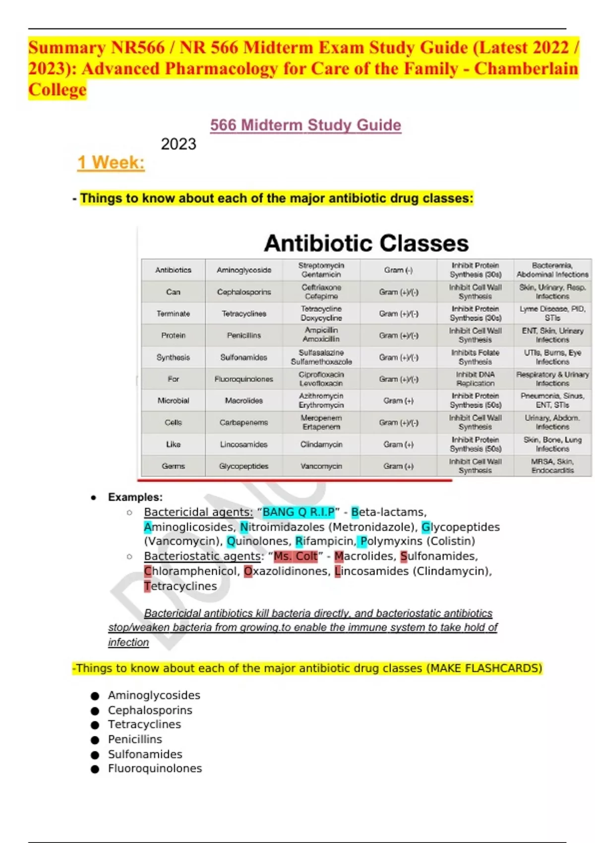 Summary NR566 / NR 566 Midterm Exam Study Guide (Latest 2022 / 2023): Advanced Pharmacology for Care of the Family - Chamberlain CollegeSummary NR566 / NR 566 Midterm Exam Study Guide (Latest 2022 / 2023): Advanced Pharmacology for Care of the Family - Chamberlain CollegeSummary NR566 / NR 566 Midterm Exam Study Guide (Latest 2022 / 2023): Advanced Pharmacology for Care of the Family - Chamberlain CollegeSummary NR566 / NR 566 Midterm Exam Study Guide (Latest 2022 / 2023): Advanced Pharmacology for Care of the Family - Chamberlain CollegeSummary NR566 / NR 566 Midterm Exam Study Guide (Latest 2022 / 2023): Advanced Pharmacology for Care of the Family - Chamberlain College
