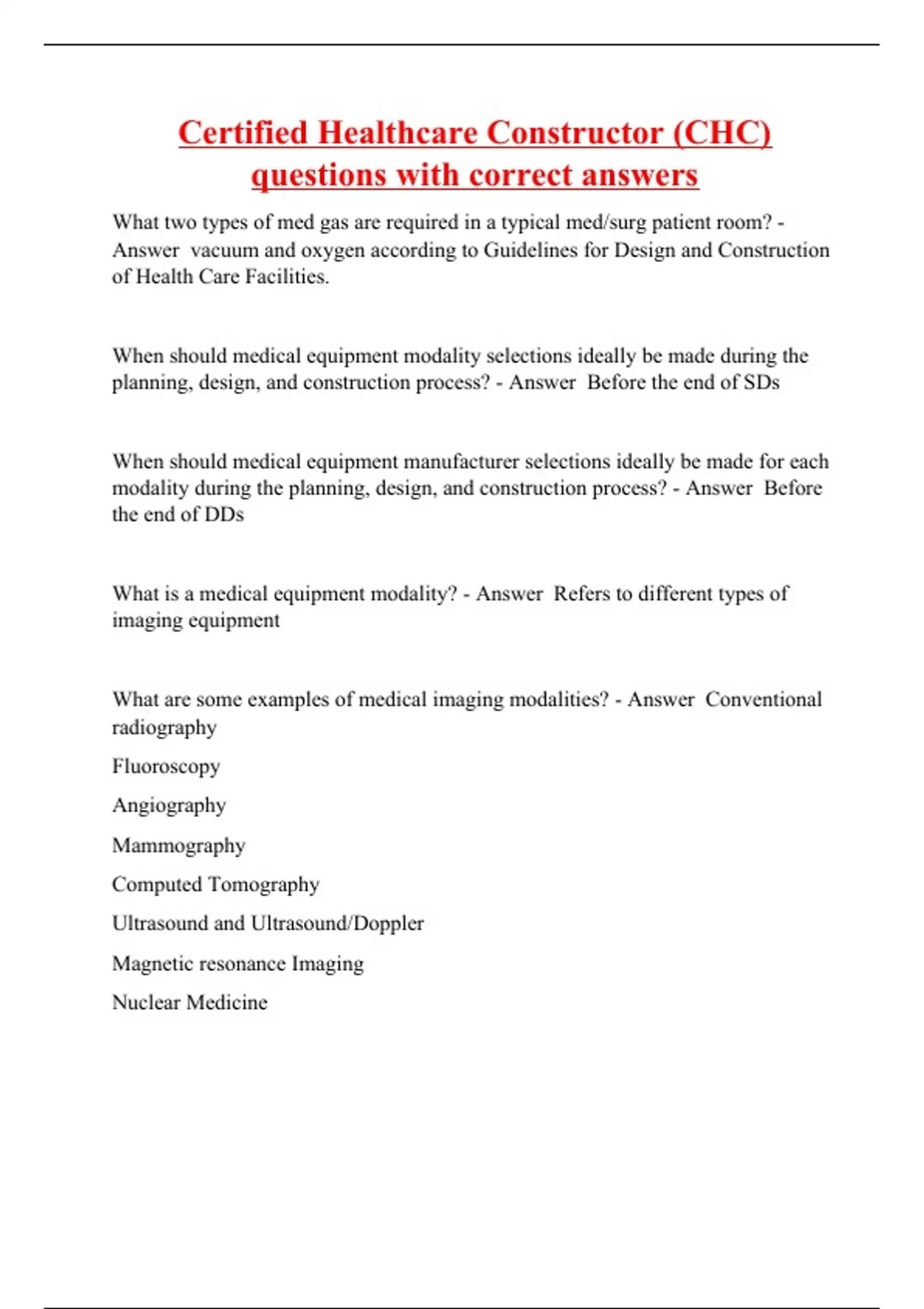 Certified Healthcare Constructor (CHC) questions with correct answers