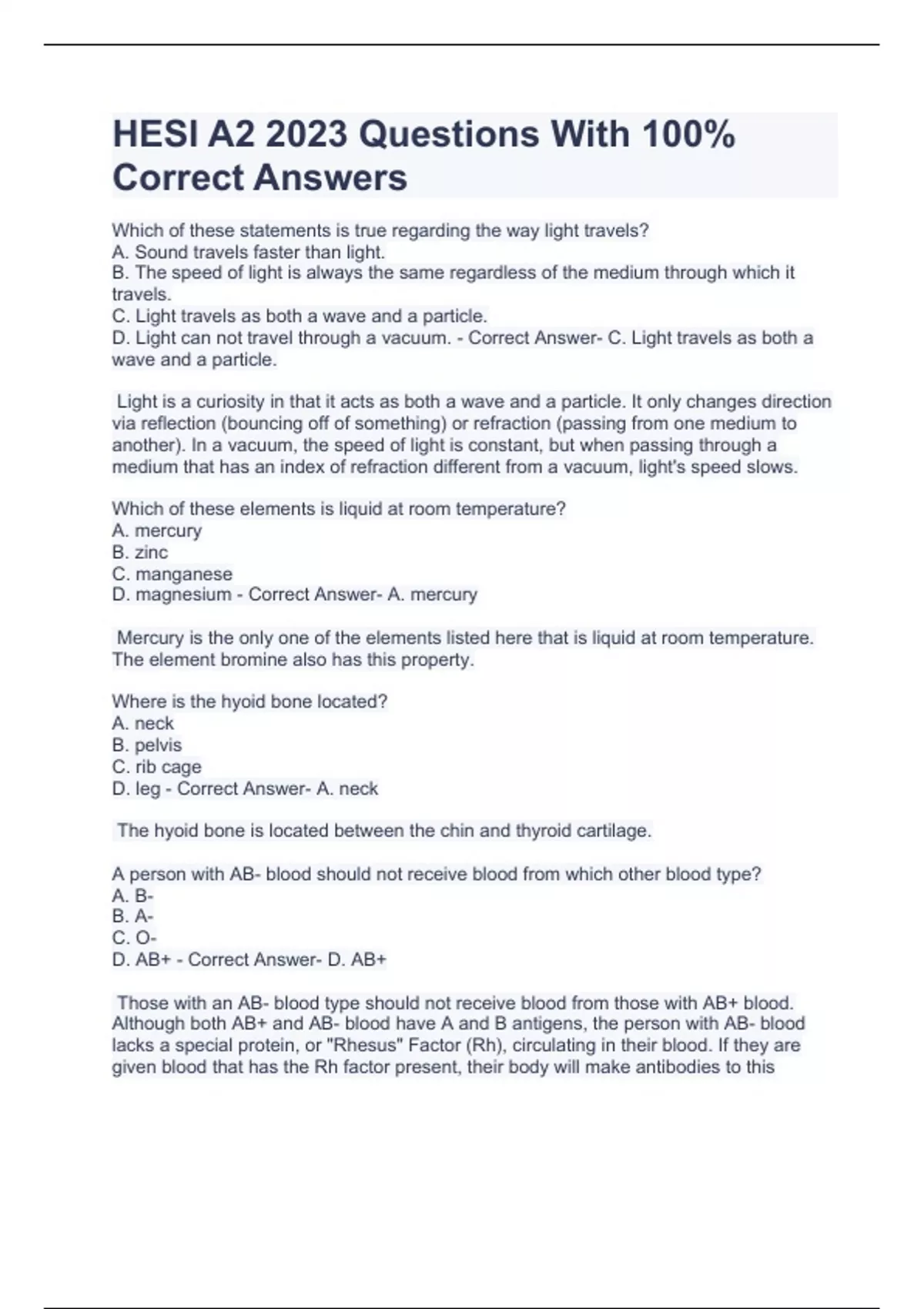 Package deal for A&P HESI A2 PRACTICE TEST QUESTIONS With 100% Correct Solutions 2023