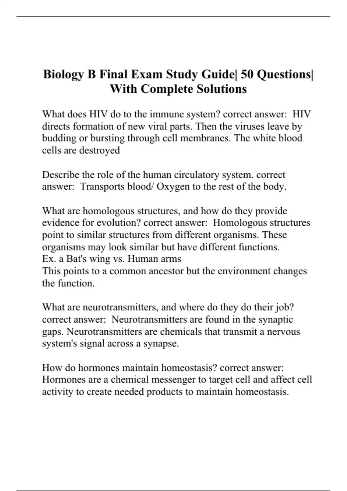 Biology B Final Exam Study Guide| 50 Questions| With Complete Solutions