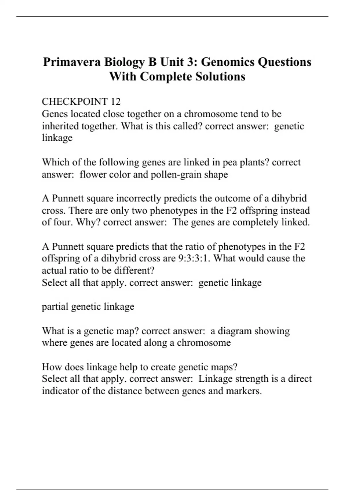 Primavera Biology B Unit 3: Genomics Questions With Complete Solutions