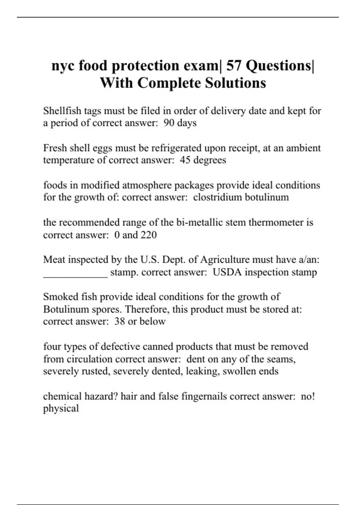 nyc food protection exam| 57 questions| with compl
