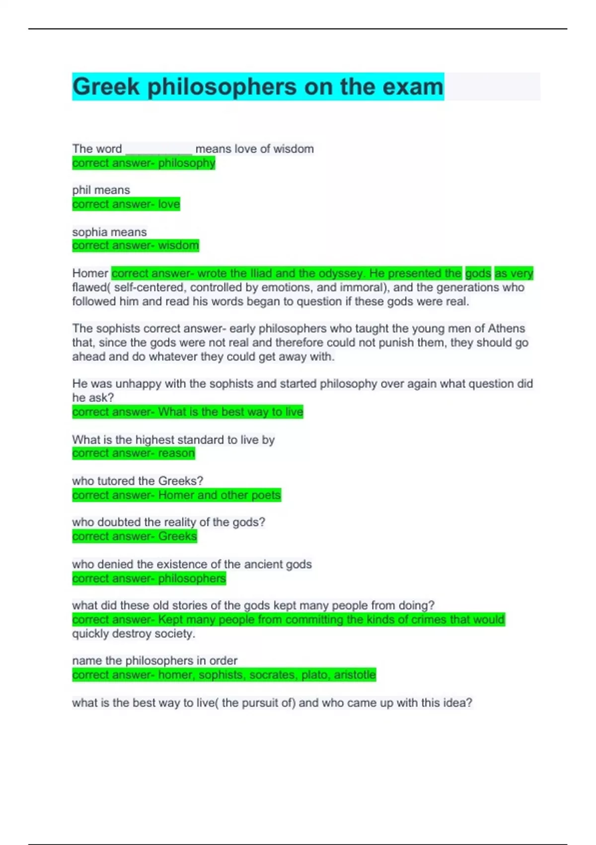 greek philosophers on the exam
