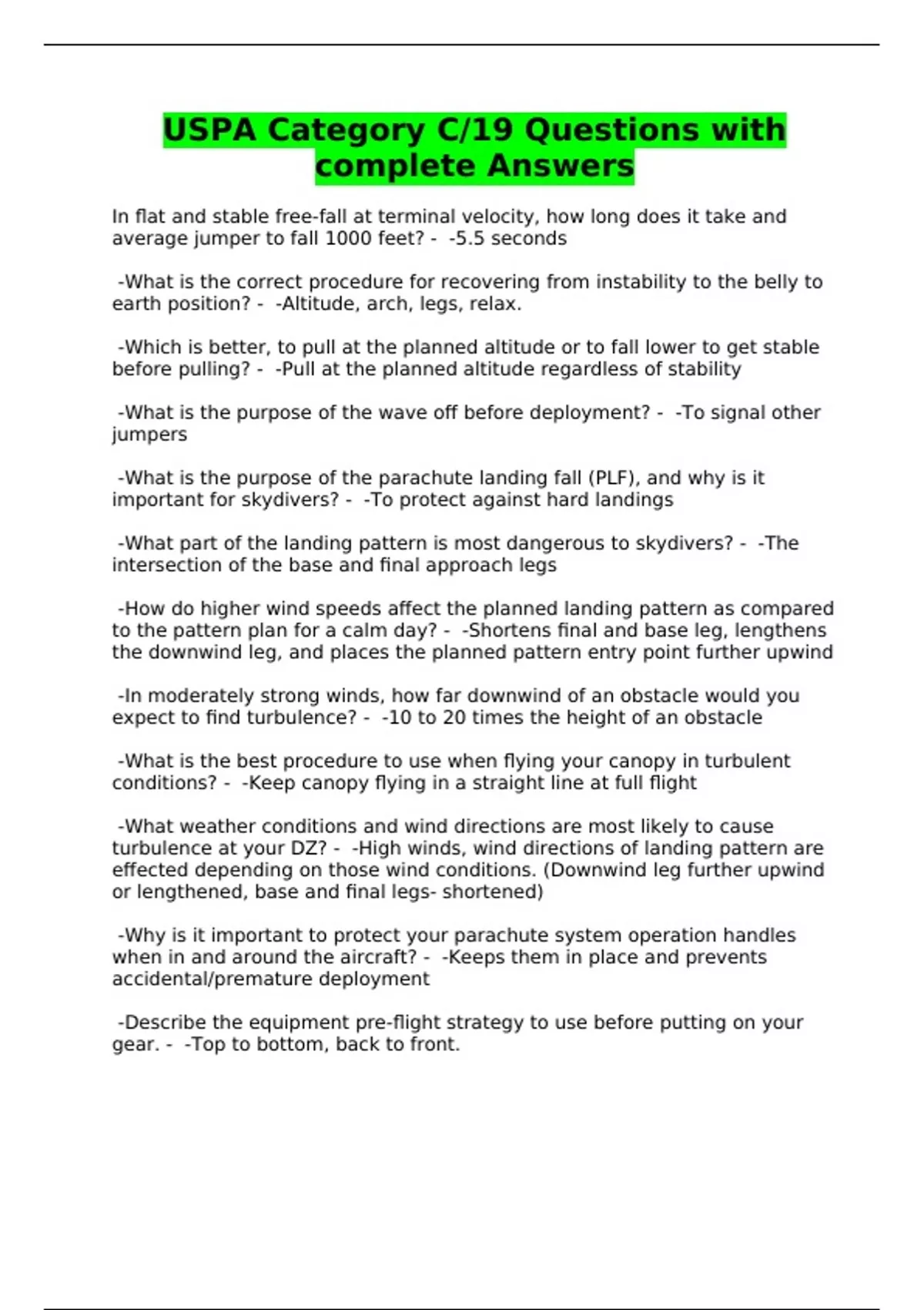 USPA Category C/19 Questions with complete Answers