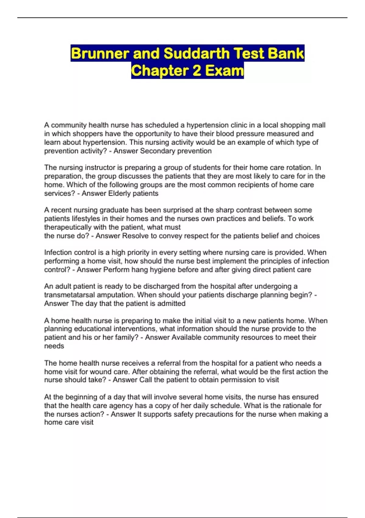 Brunner and Suddarth Test Bank Chapter 2 Exam...