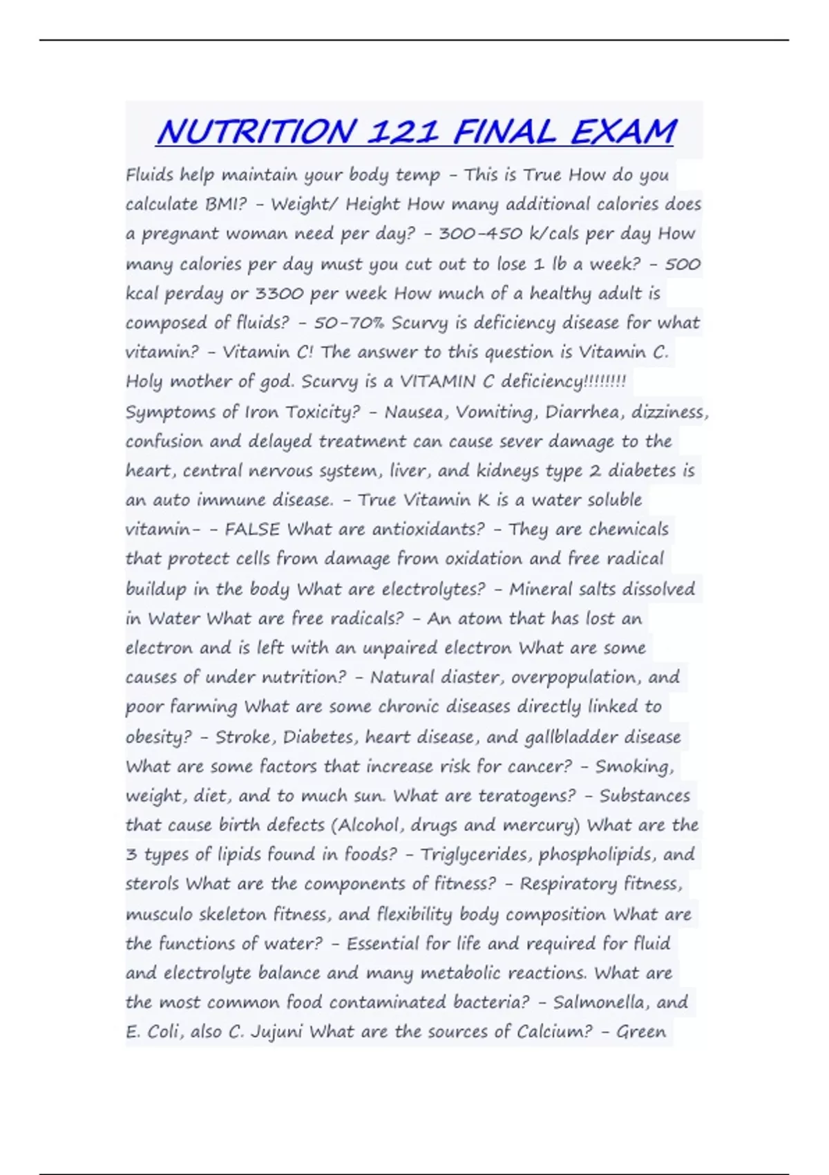 Fluids help maintain your body temp - This is True How do you calculate BMI? - Weight/ Height How many additional calories does a pregnant woman need per day? - 300-450 k/cals per day How many calories per day must you cut out to lose 1 lb a week? - 500 kcal perday or 3300 per week How much of a healthy adult is composed of fluids? - 50-70% Scurvy is deficiency disease for what vitamin? - Vitamin C! The answer to this question is Vitamin C. Holy mother of god. Scurvy is a VITAMIN C deficiency!!!!!!!