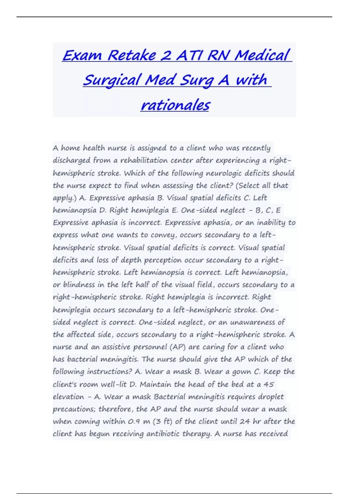 Exam Retake 2 ATI RN Medical Surgical Med Surg A with rationales