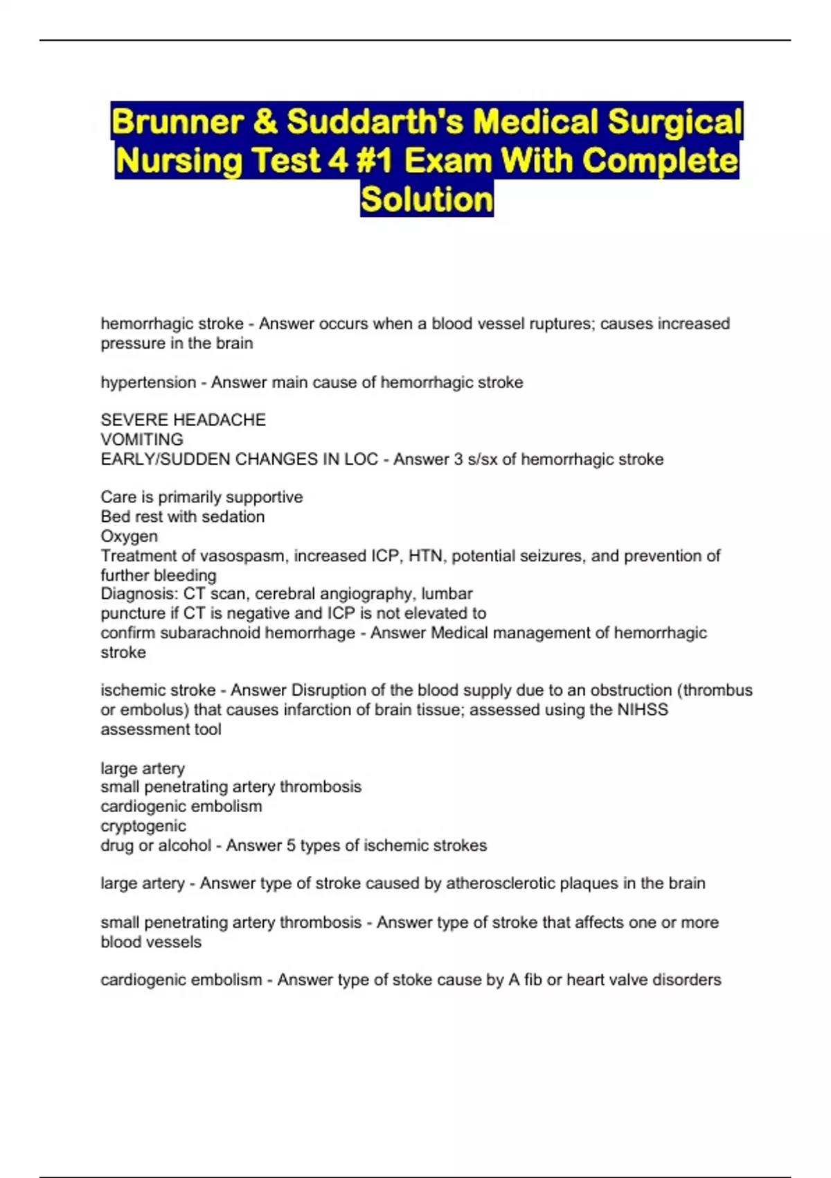 Brunner & Suddarth's Medical Surgical Nursing Test 4 #1 Exam With Complete Solution