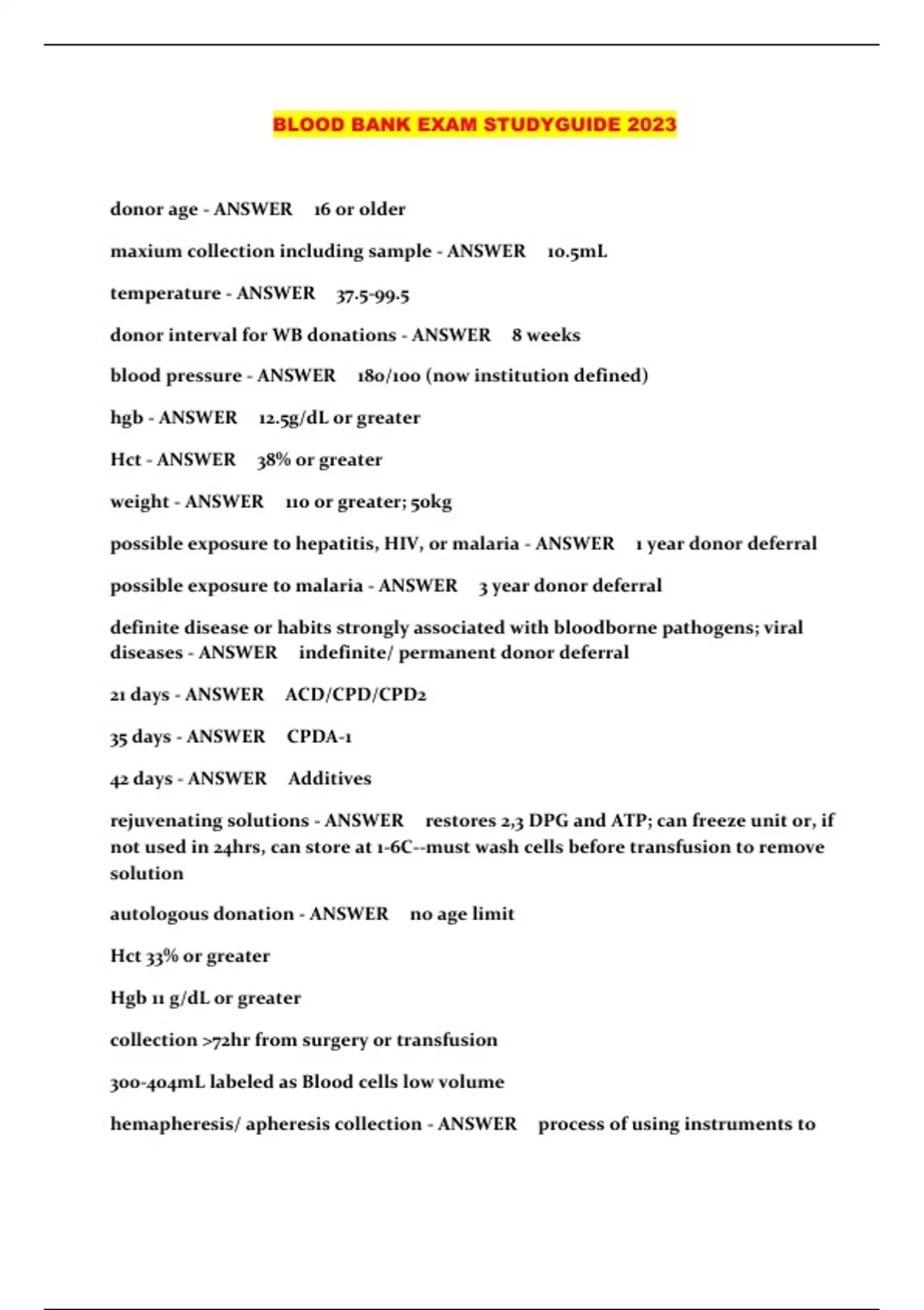 BLOOD BANK EXAM STUDYGUIDE 2023...