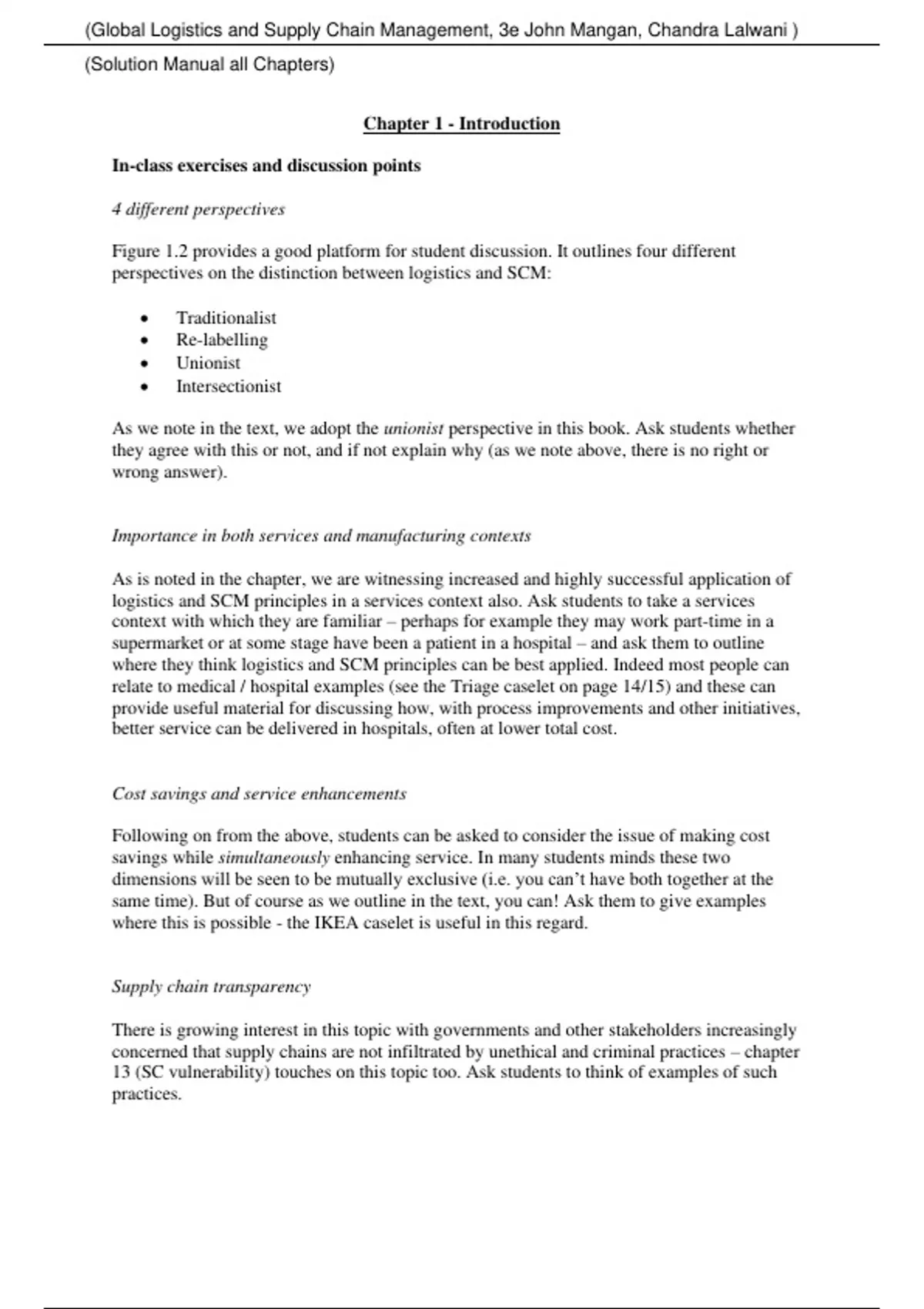 Global Logistics and Supply Chain Management, 3e John Mangan, Chandra Lalwani (Solution Manual) Global Logistics and Supply Chain Management, 3e John Mangan, Chandra Lalwani (Solution Manual)