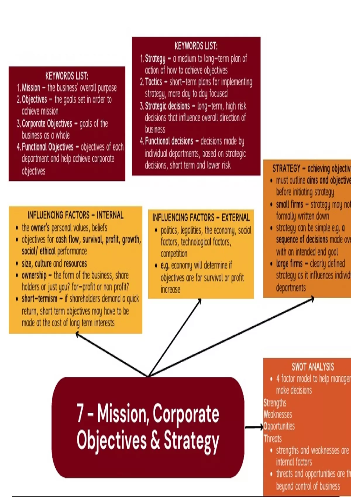 7 - Mission, Corporate Objectives & Strategy Mindmap - Business Studies AQA A Level