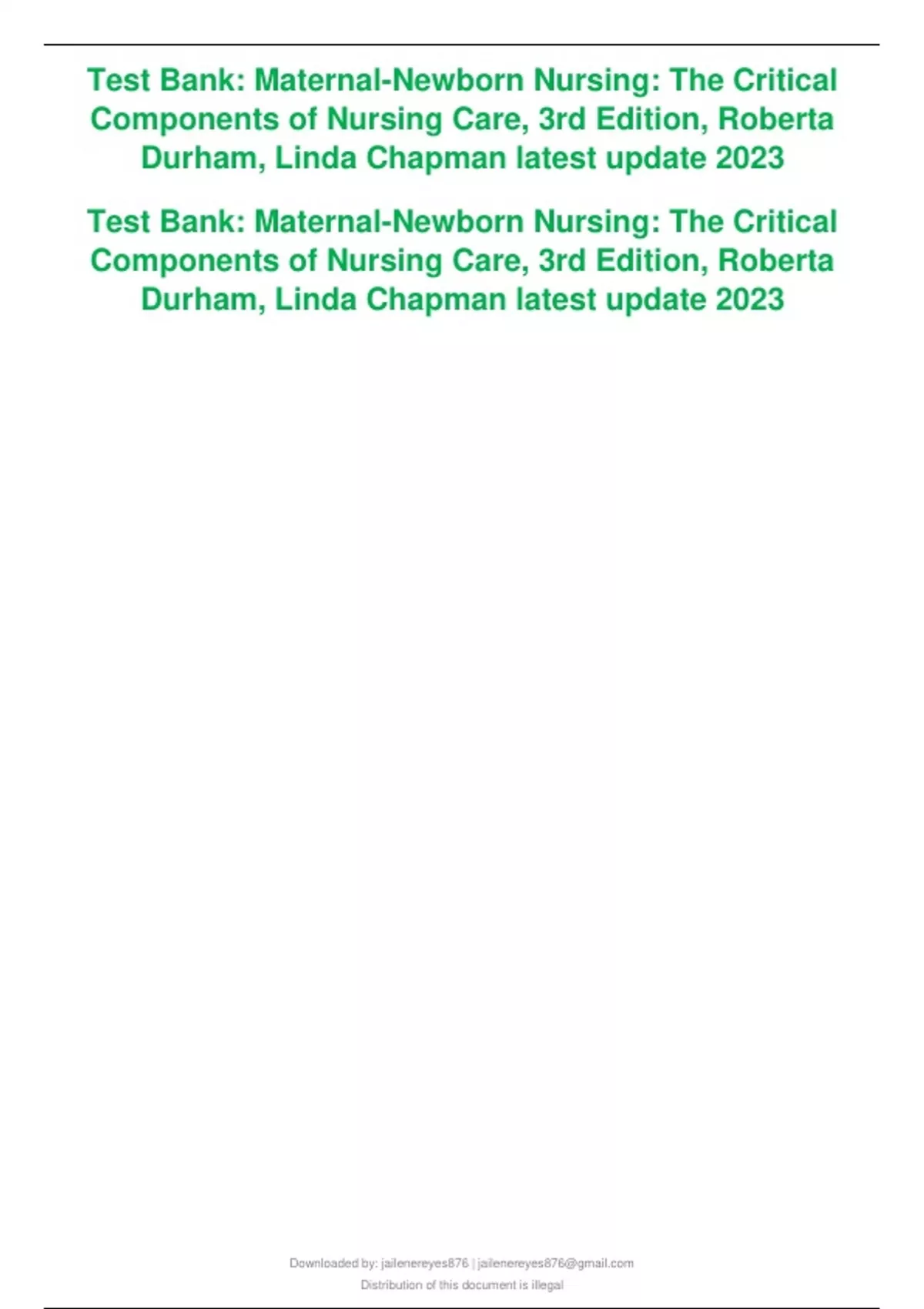 Test Bank Maternal-Newborn Nursing latest update June 2023 The Critical Components of Nursing Care, 10th Edition, Roberta Durham, Linda Chapman