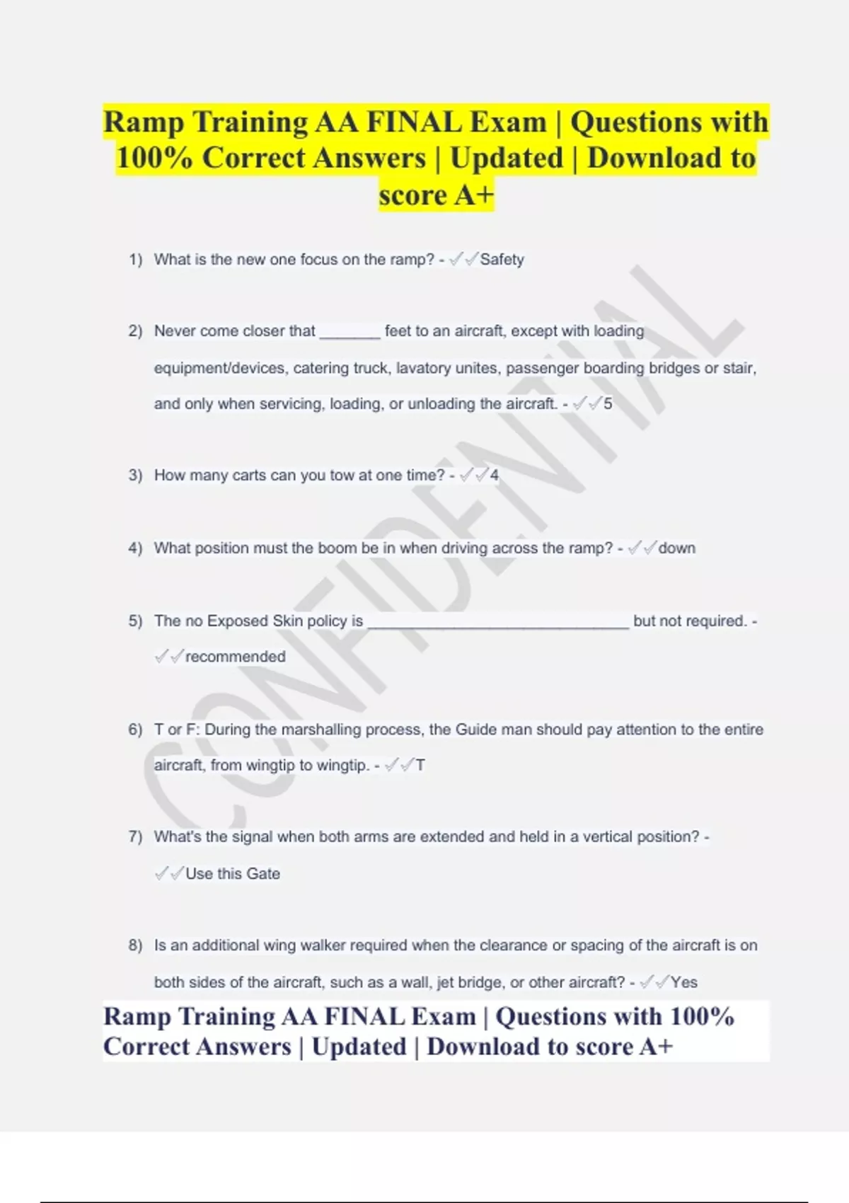 Ramp Training AA FINAL Exam | Questions with 100% Correct Answers | Updated | Download to score A+
