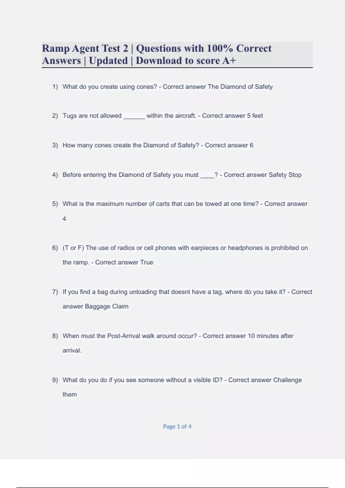 Ramp Agent Test 2 | Questions with 100% Correct Answers | Updated | Download to score A+