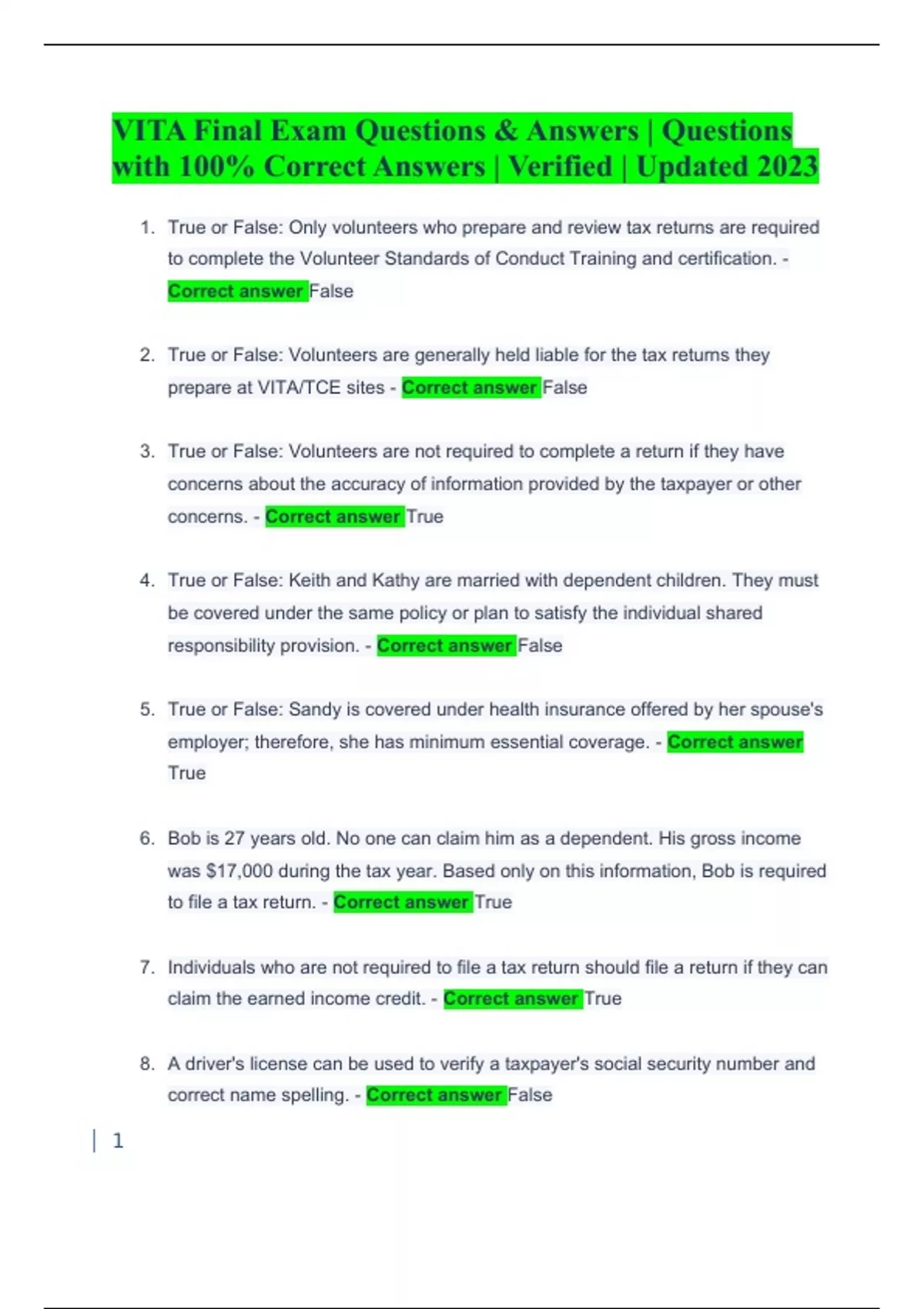 VITA Final Exam Questions & Answers | Questions with 100% Correct Answers | Verified | Updated 2023
