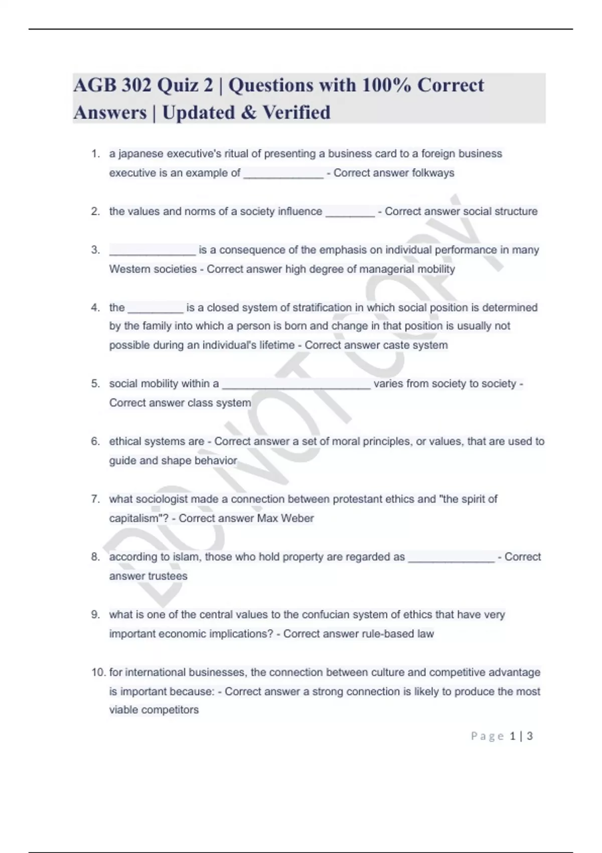 AGB 302 Quiz 2 | Questions with 100% Correct Answers | Updated & Verified