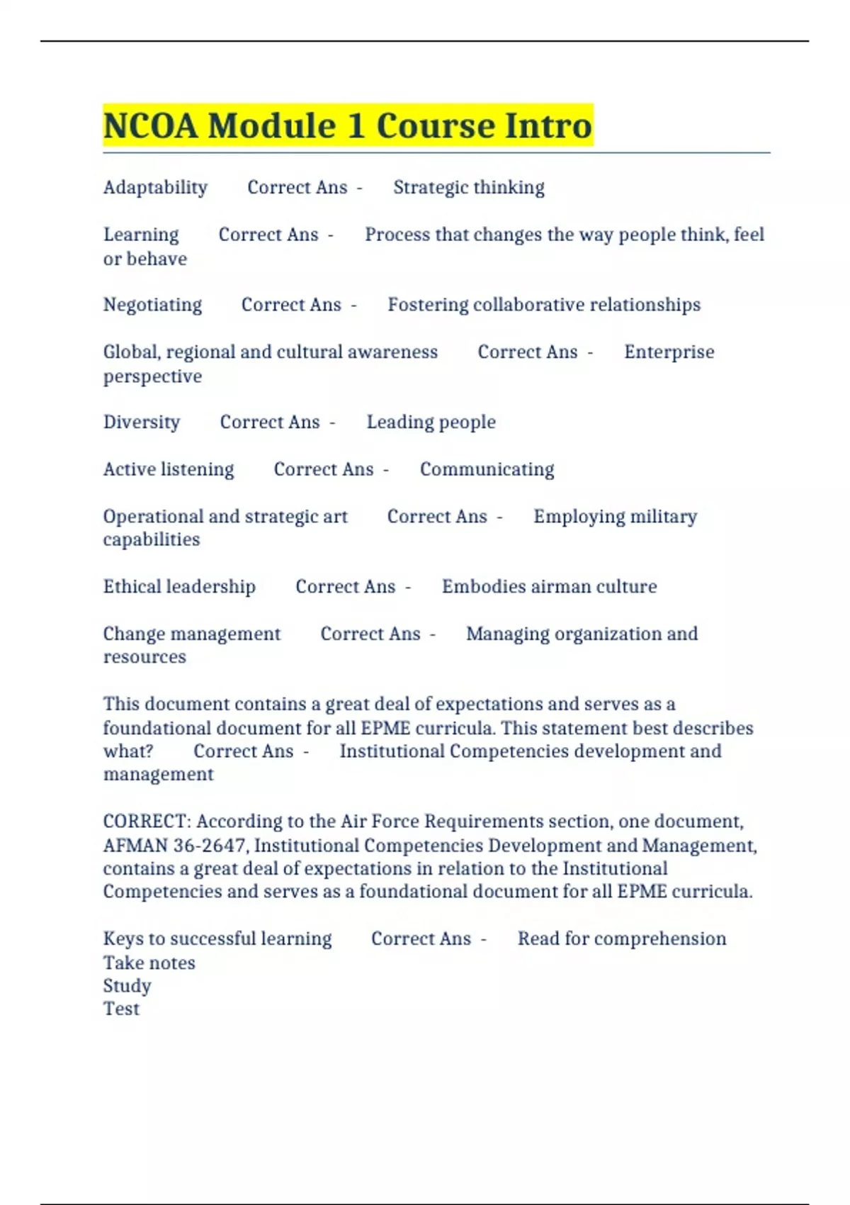 ncoa module 1 course intro