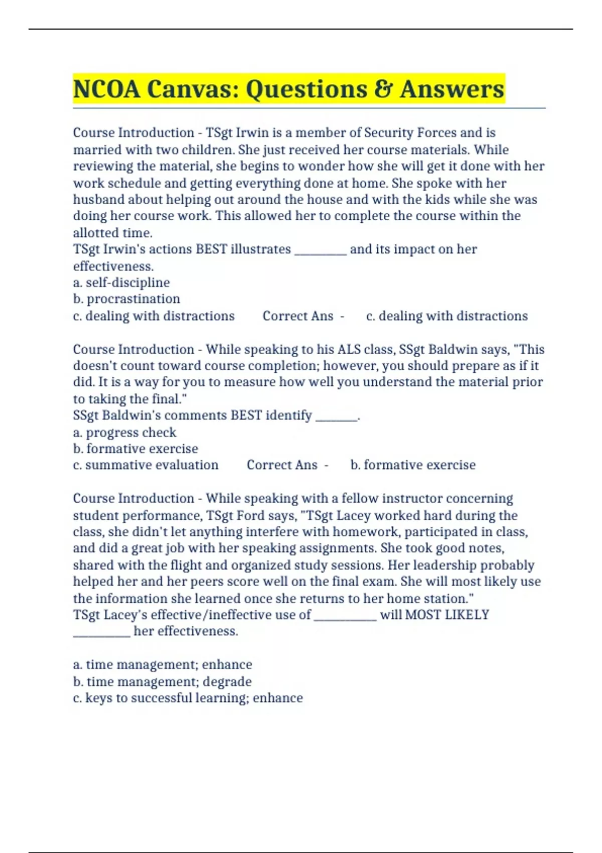 ncoa canvas questions amp answers