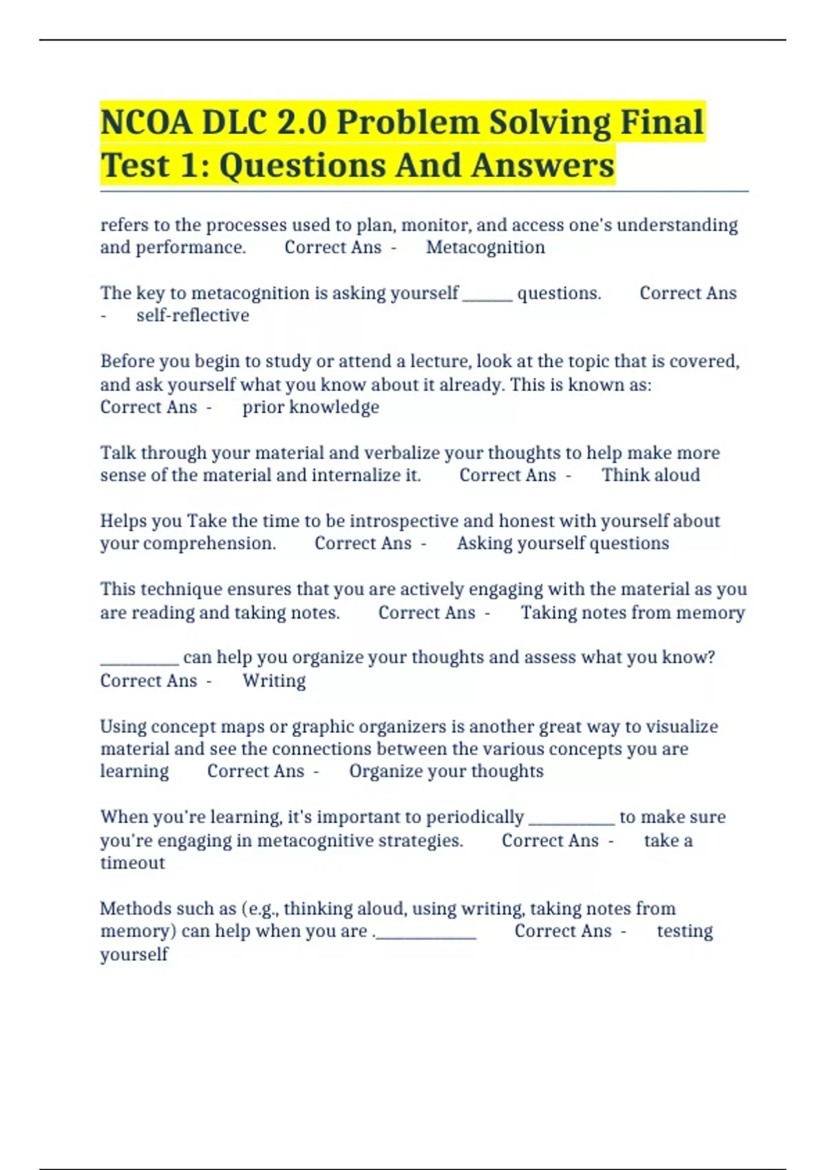 NCOA DLC 2.0 Problem Solving Final Test 1: Questions And Answers
