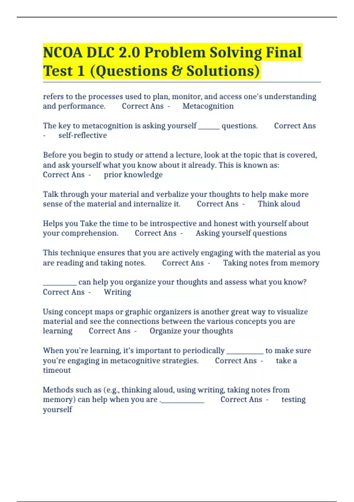 NCOA DLC 2.0 Problem Solving Final Test 1 (Questions & Solutions)