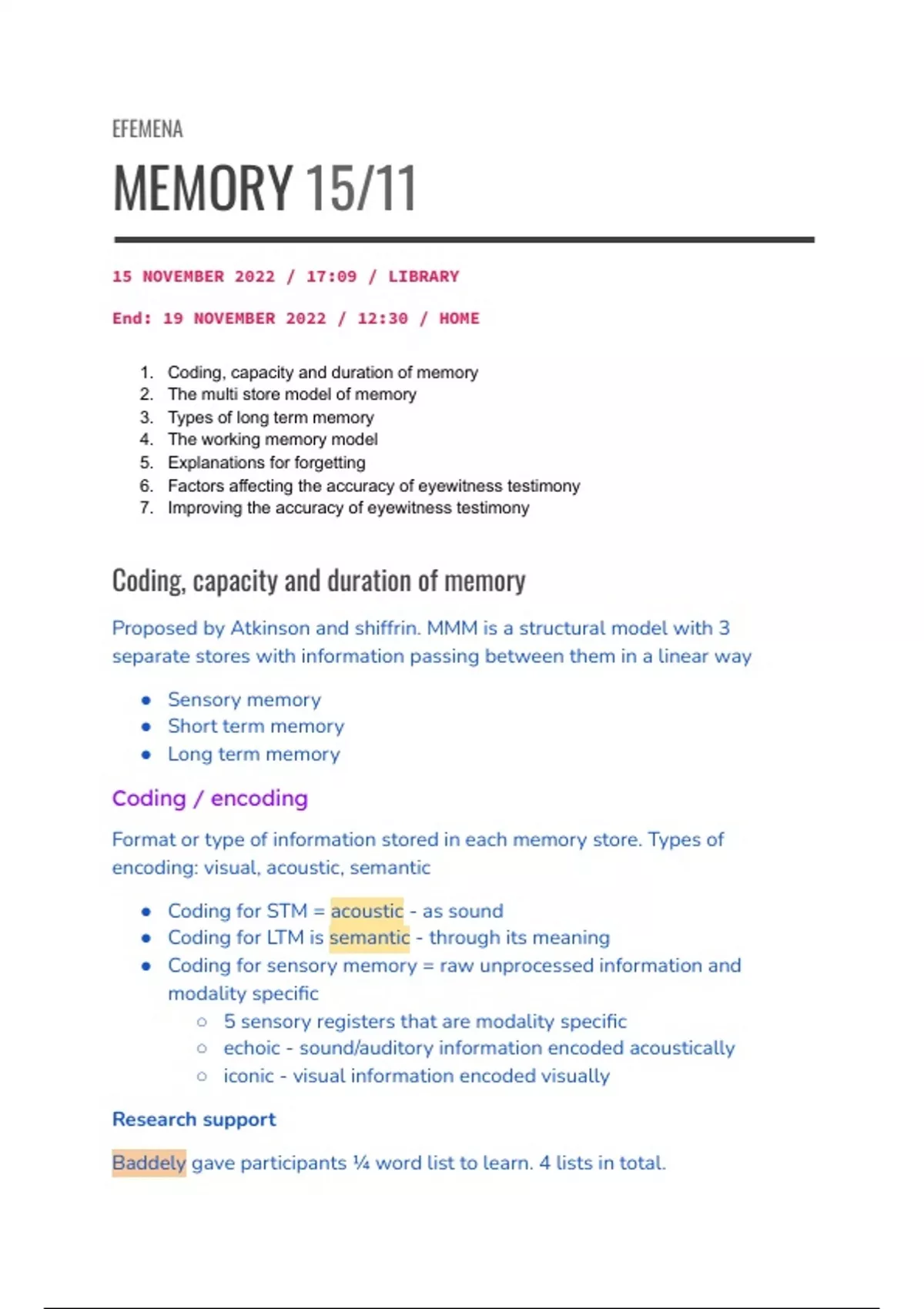 encoding: visual, acoustic, semantic