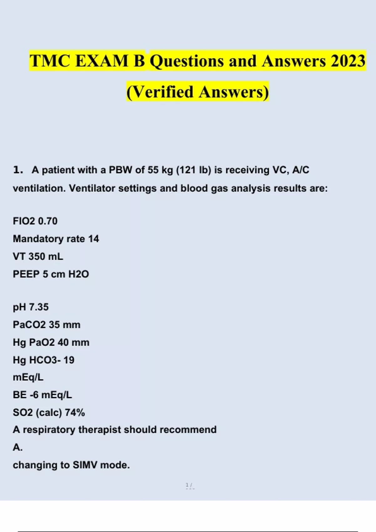 TMC EXAM B Questions and Answers 2023 (Verified 160 Questions) TMC EXAM B Questions and Answers 2023 (Verified 160 Questions)
