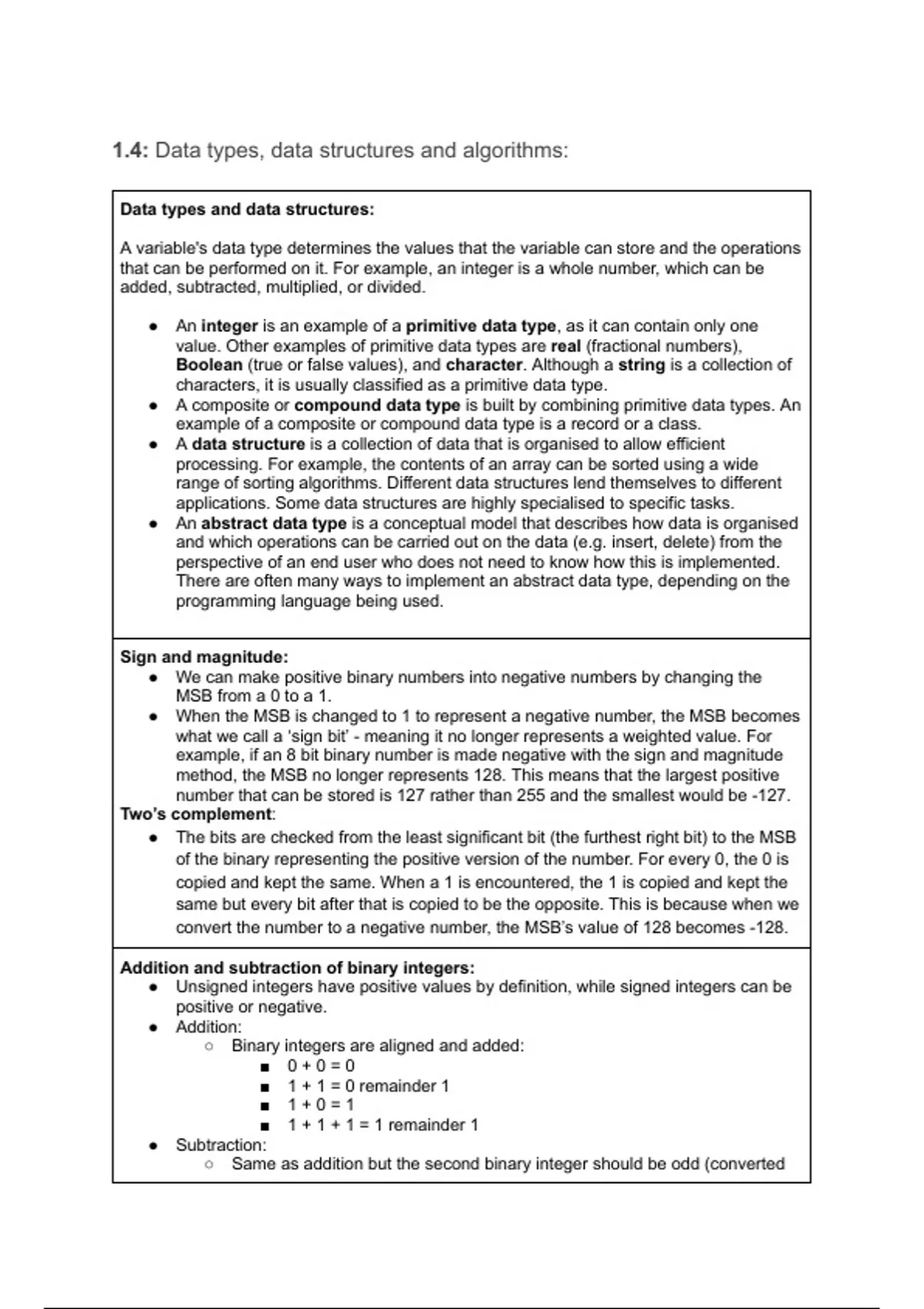 1.4: Data types, data structures and algorithms: