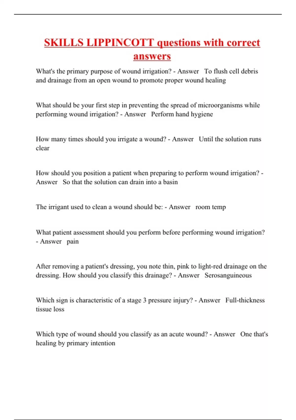 SKILLS LIPPINCOTT questions with correct answers