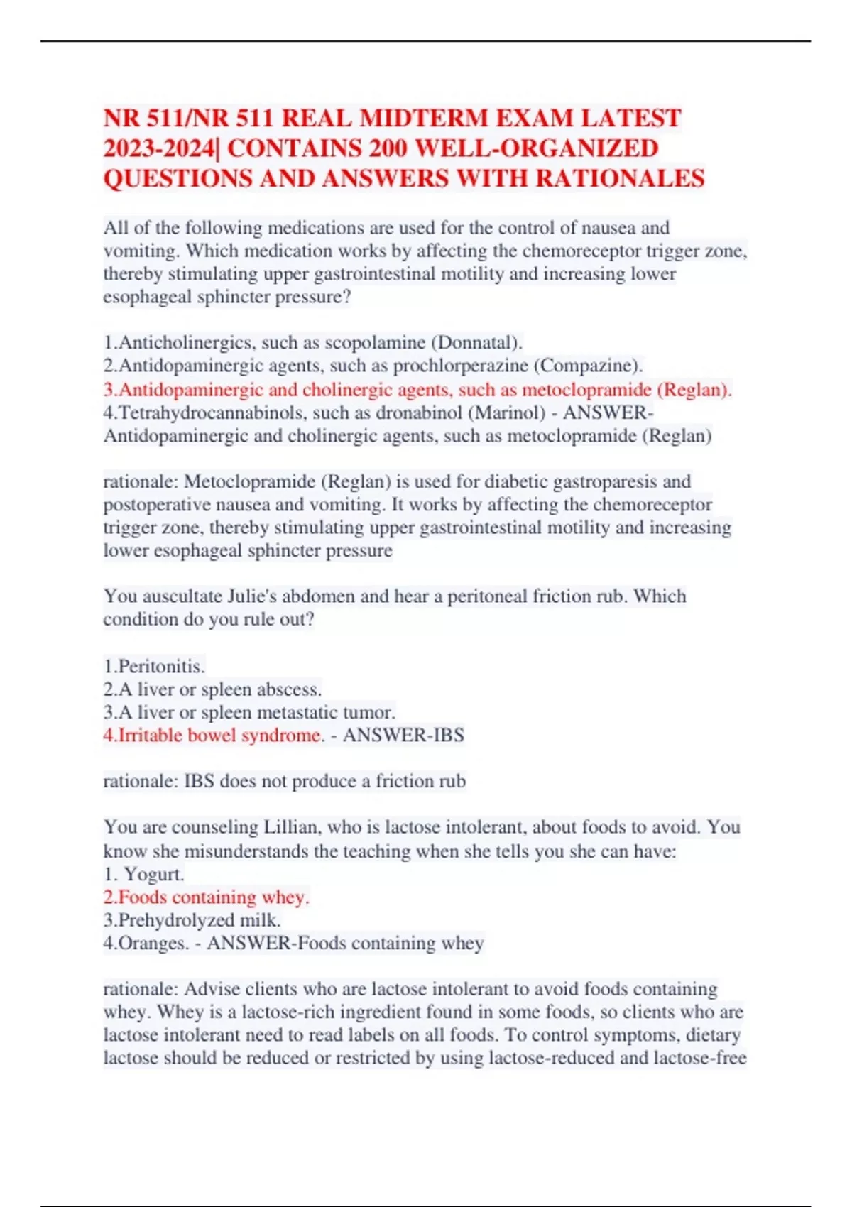 NR 511/NR 511 REAL MIDTERM EXAM LATEST | CONTAINS 200 WELL-ORGANIZED QUESTIONS AND ANSWERS WITH RATIONALES