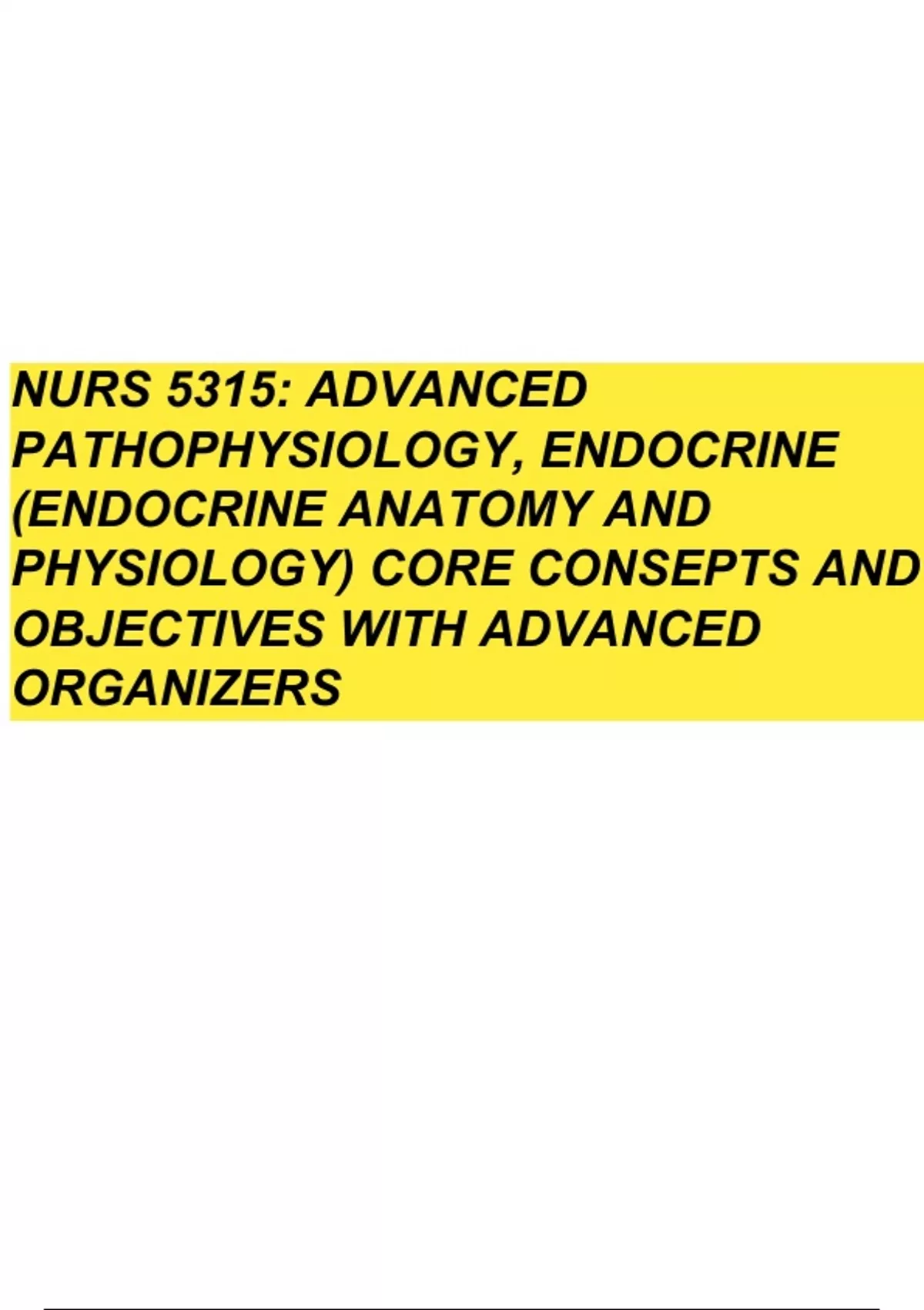 NURS 5315: Advanced Pathophysiology, Endocrine (Endocrine Anatomy and Physiology) Core Concepts and Objectives with Advanced Organizer