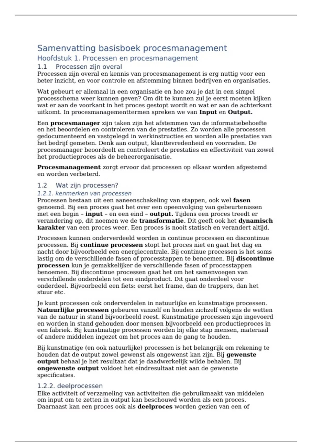 Samenvatting - Procesmanagement