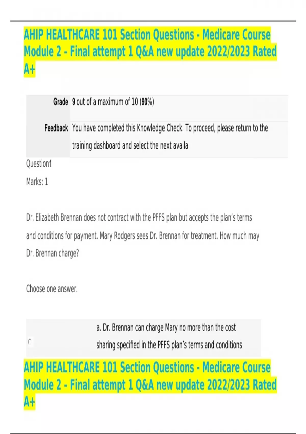 AHIP HEALTHCARE 101 Section Questions - Medicare Course Module 2 – Final attempt 1 Q&A new update 2022/2023 Rated A+