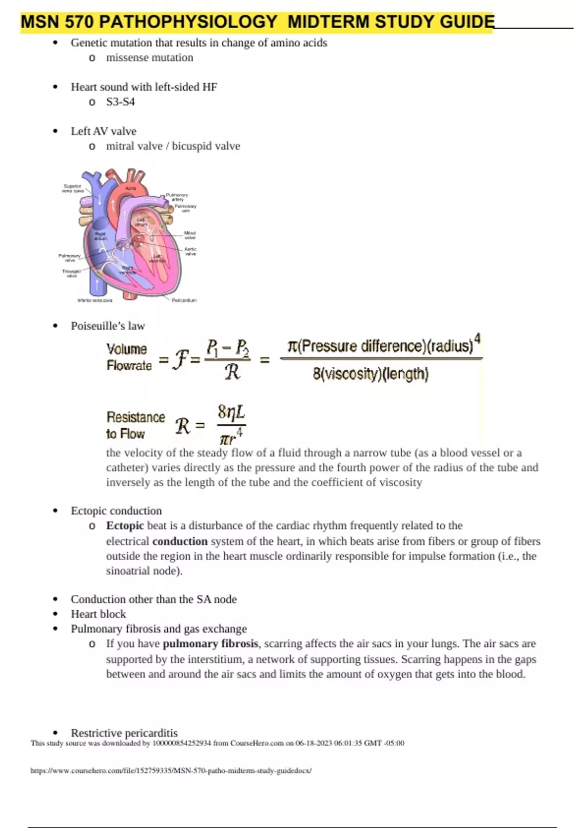 Nursing MSN 570 Pathophysiology Midterm study guide 2- United States University