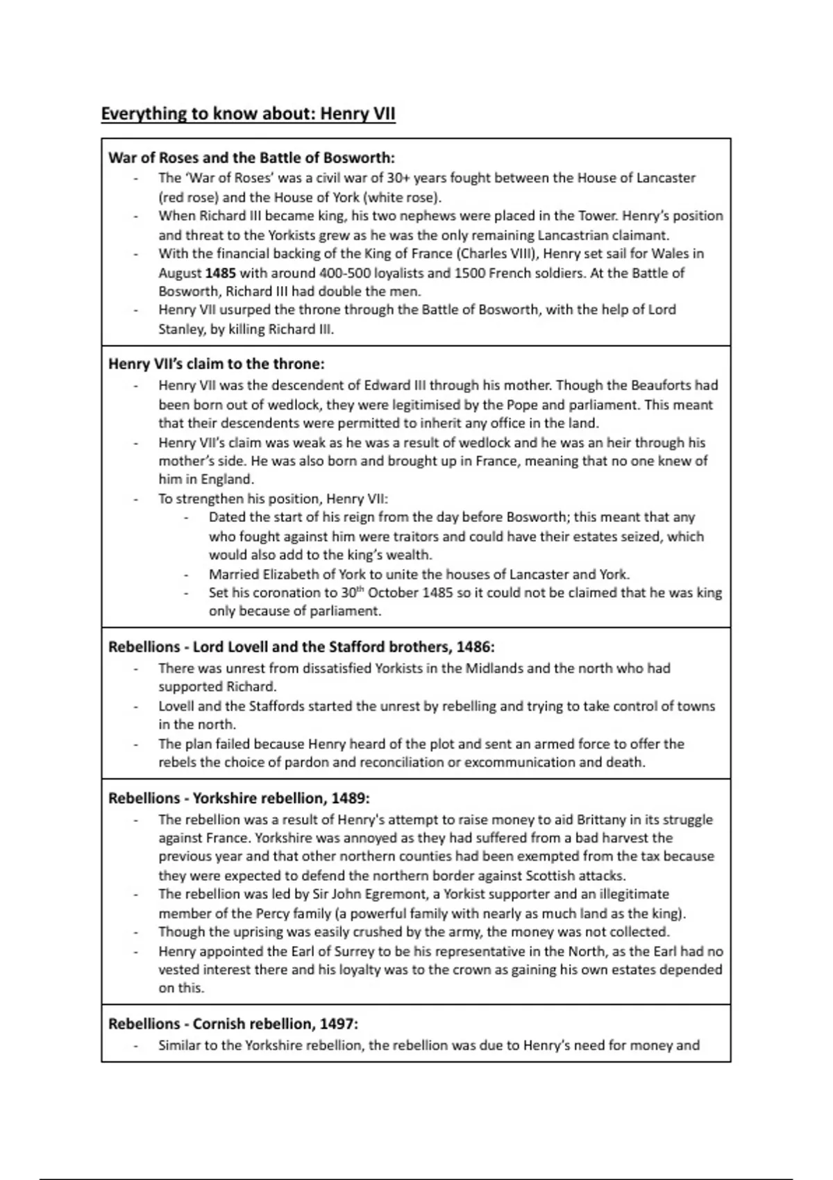 - Henry VII’s claim was weak as he was a result of wedlock and he was an heir through his