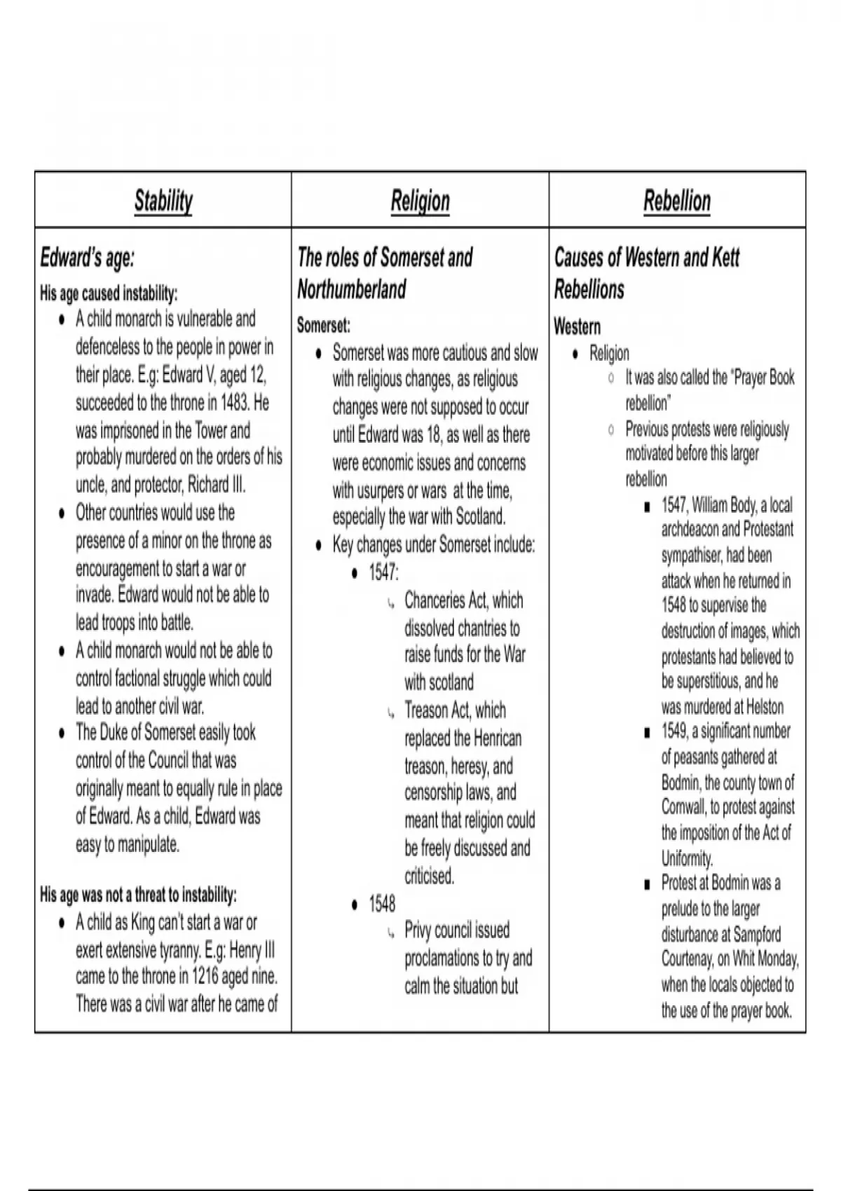 their place. E.g: Edward V, aged 12, with religious changes, as religious ○ It was also called the “Prayer Book