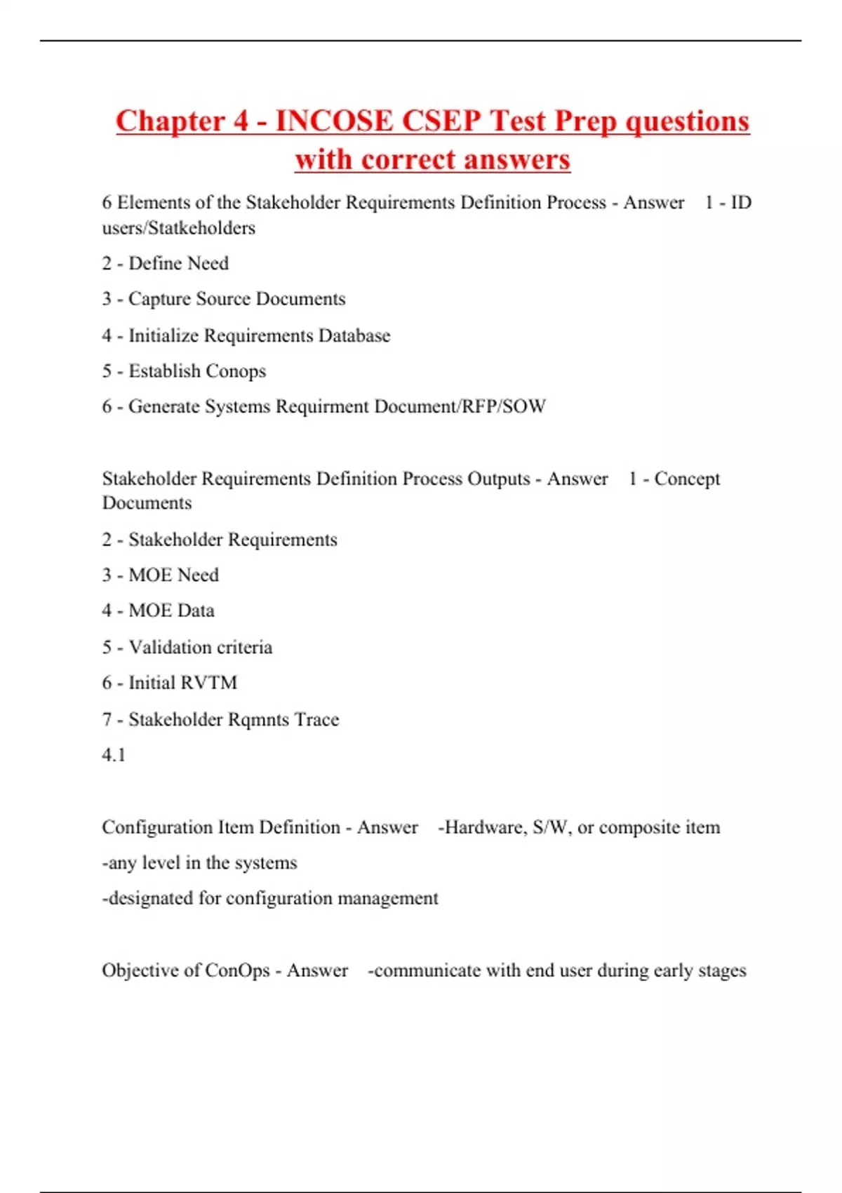 Chapter 4 - INCOSE CSEP Test Prep questions with correct answers
