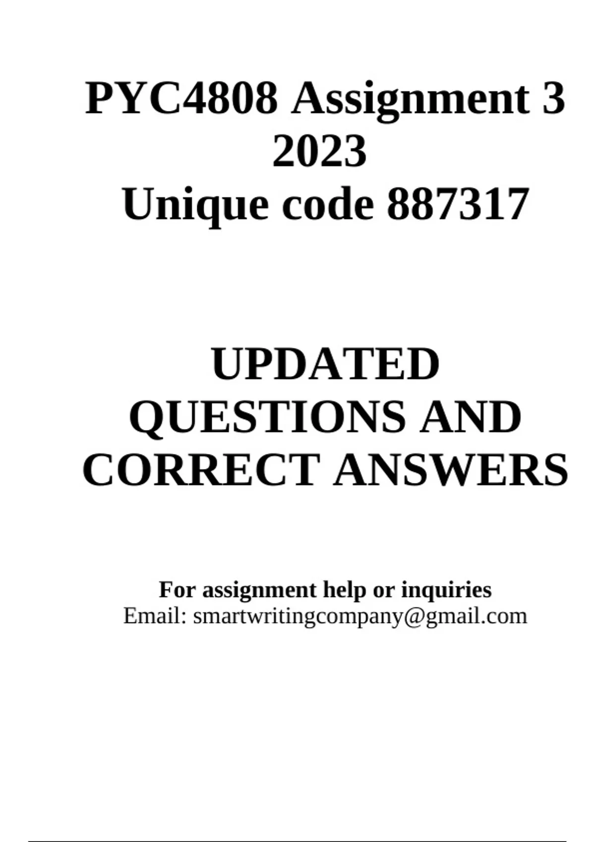 PYC4808 Assignment 3 2023 (Essay) TWO Essays 887317