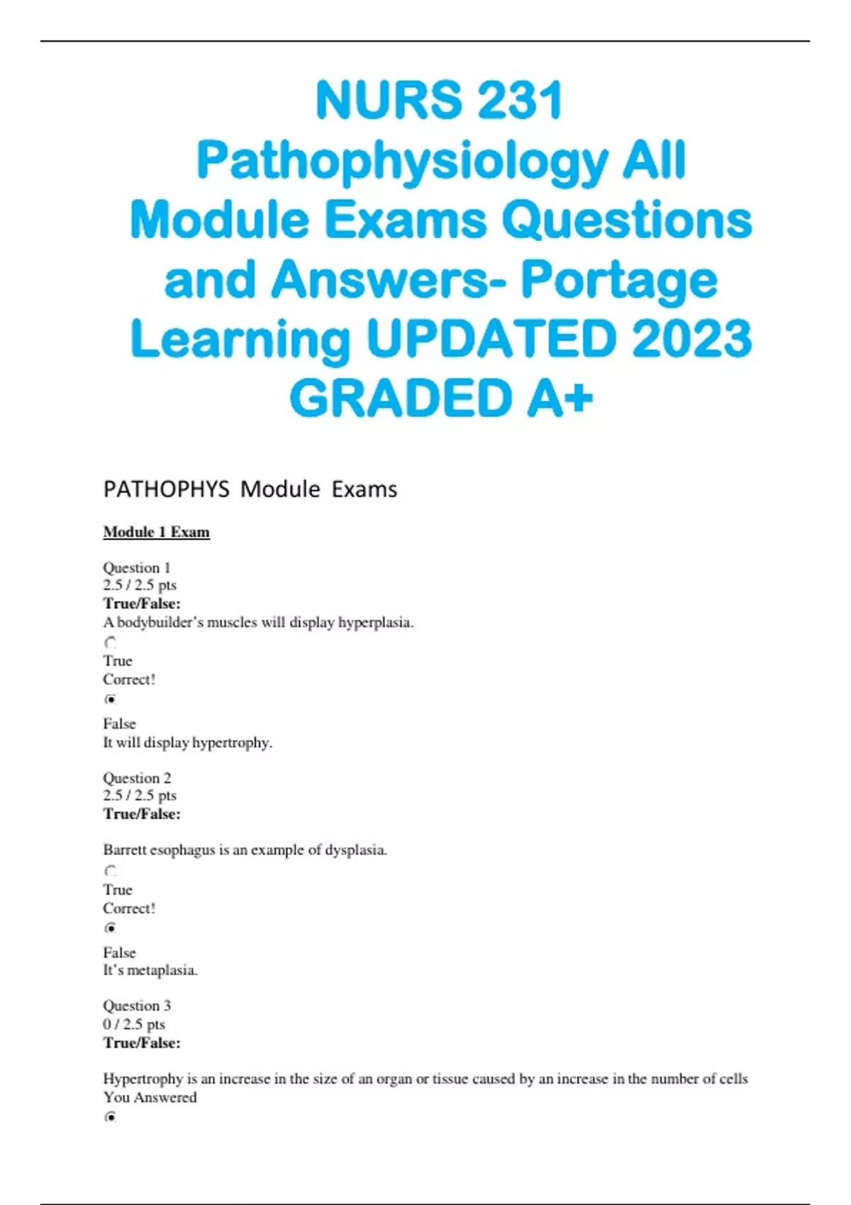 NURS 231 Pathophysiology All Module Exams Questions and Answers- Portage Learning UPDATED 2023 GRADED A+