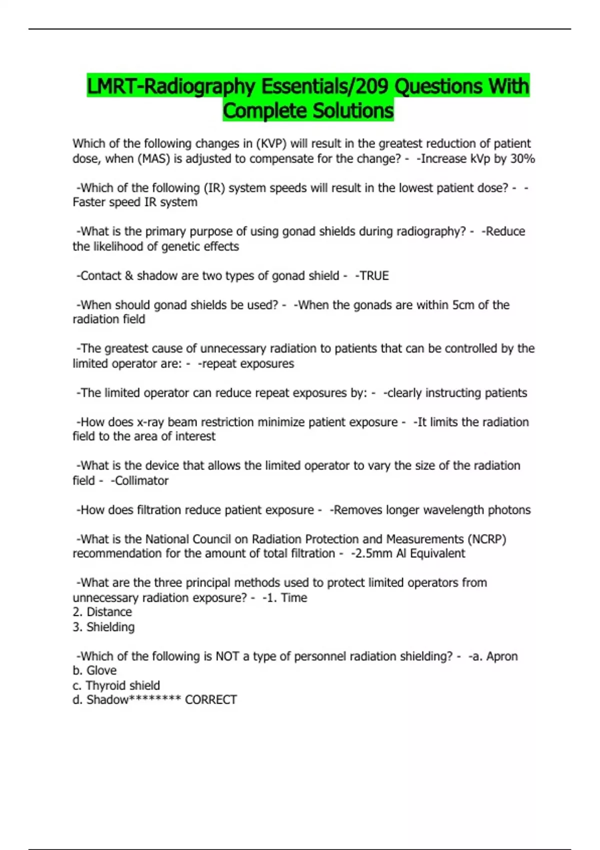 LMRT-Radiography Essentials/209 Questions With Complete Solutions