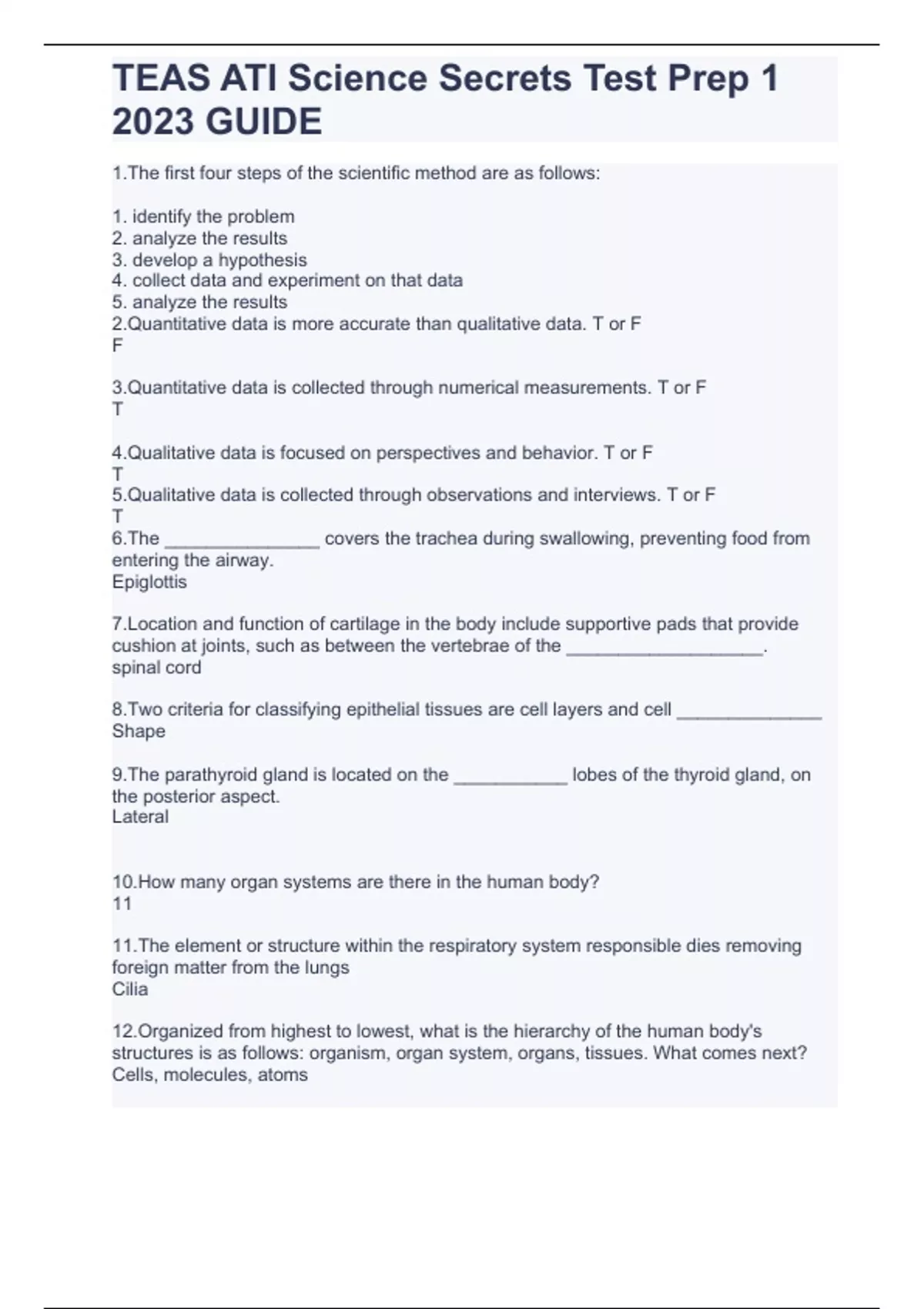 TEAS ATI Science Secrets Test Prep 1 with correct answers 2023