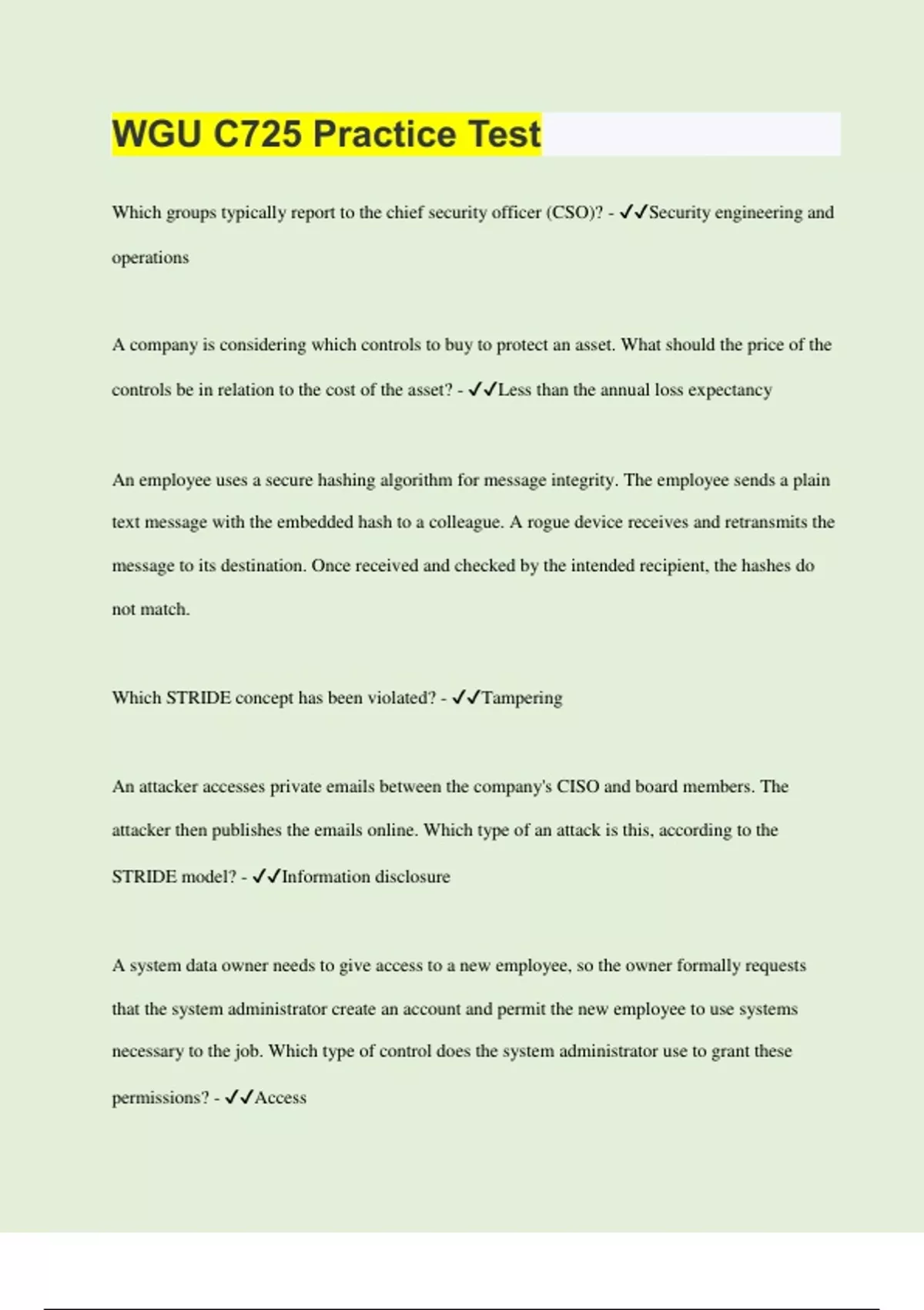 WGU C725 Practice Test | 137 Questions with 100% Correct Answers | Verified | Latest Update | 26 Pages
