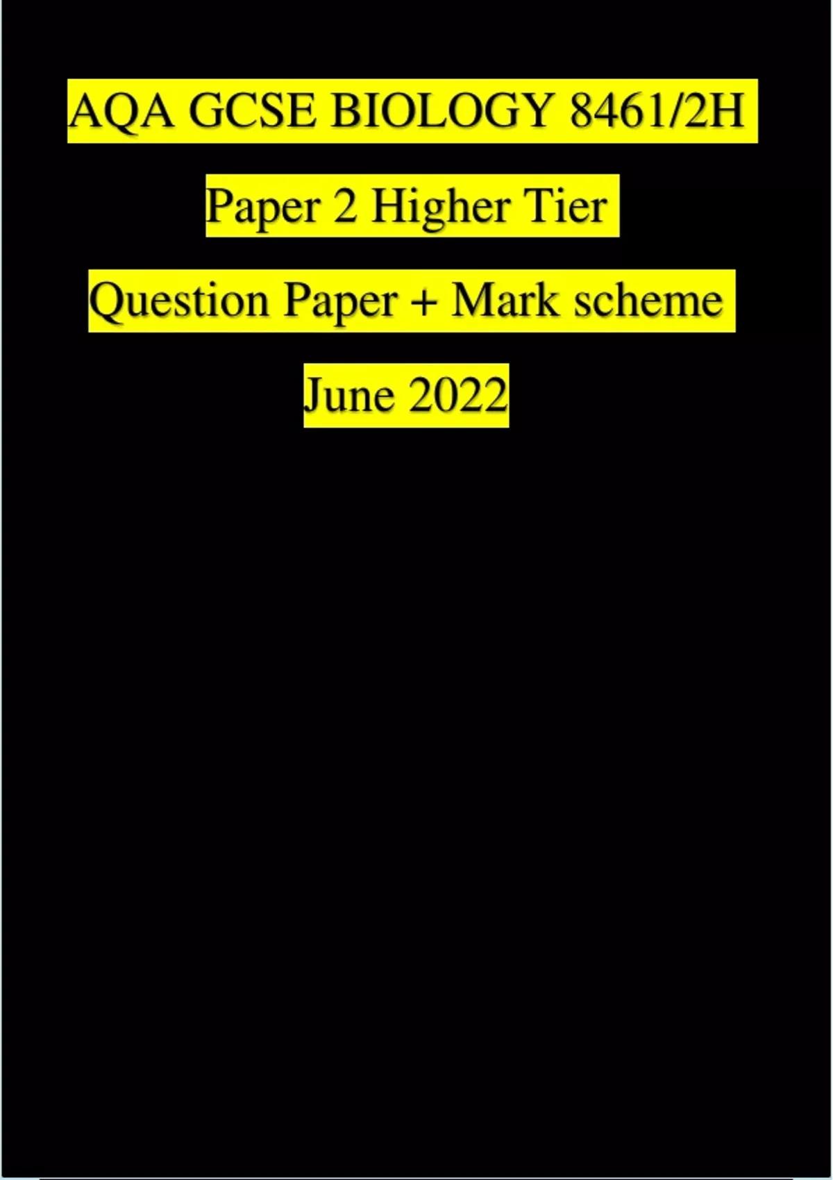 AQA GCSE BIOLOGY 8461/2H Paper 2 Higher Tier Question Paper + Mark scheme June 2022 AQA GCSE BIOLOGY 8461/2H Paper 2 Higher Tier Question Paper + Mark scheme June 2022