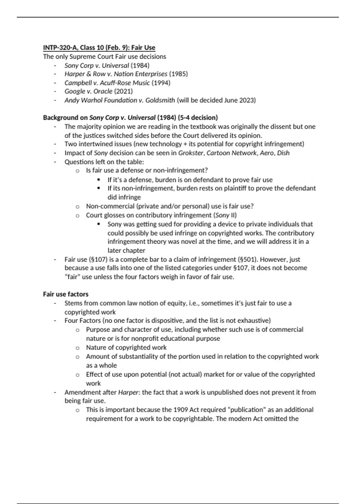 INTP-320 Copyright Law Class 10: Fair Use