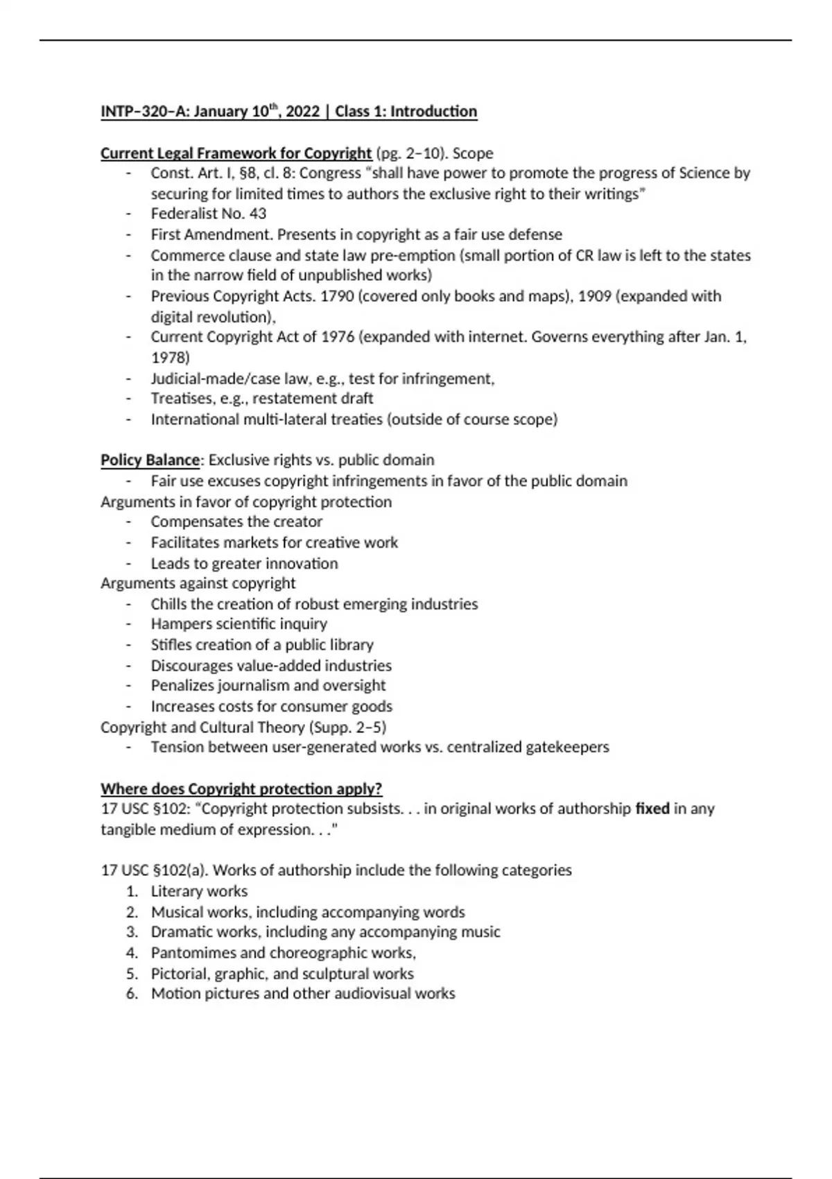 INTP-320 Copyright Law Class Notes (28 total)
