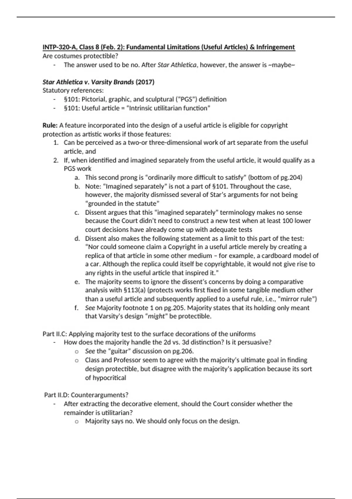 INTP-320 Copyright Law Class 8 (Scope of Copyright Law: Useful Articles)