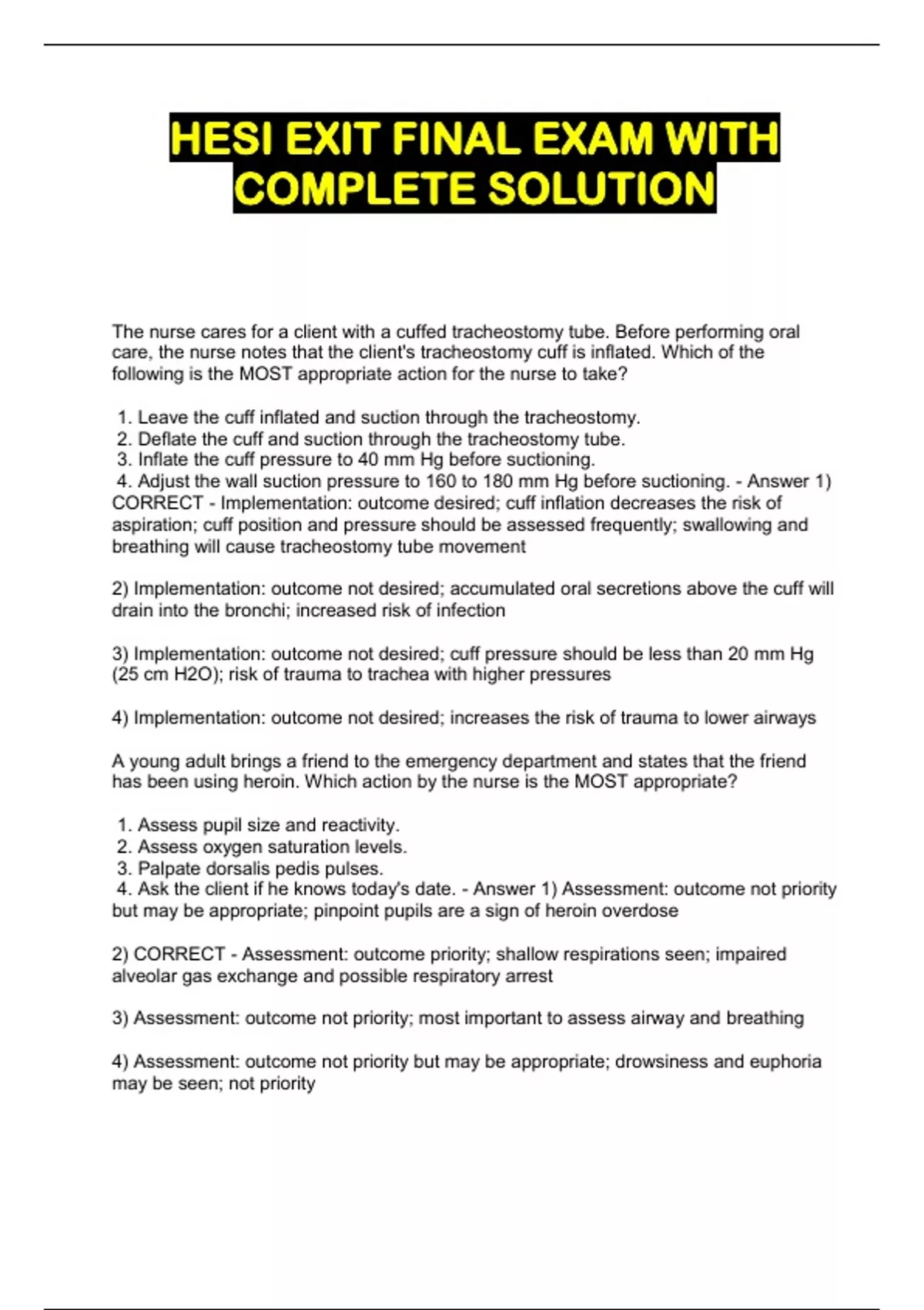 HESI EXIT FINAL EXAM WITH COMPLETE SOLUTION...