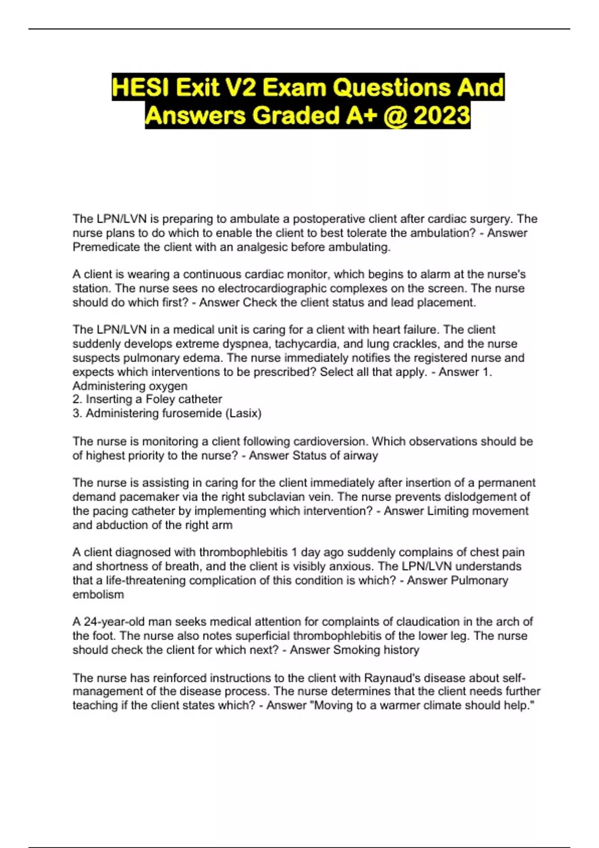 HESI Exit V2 Exam Questions And Answers Graded A+ @ 2023