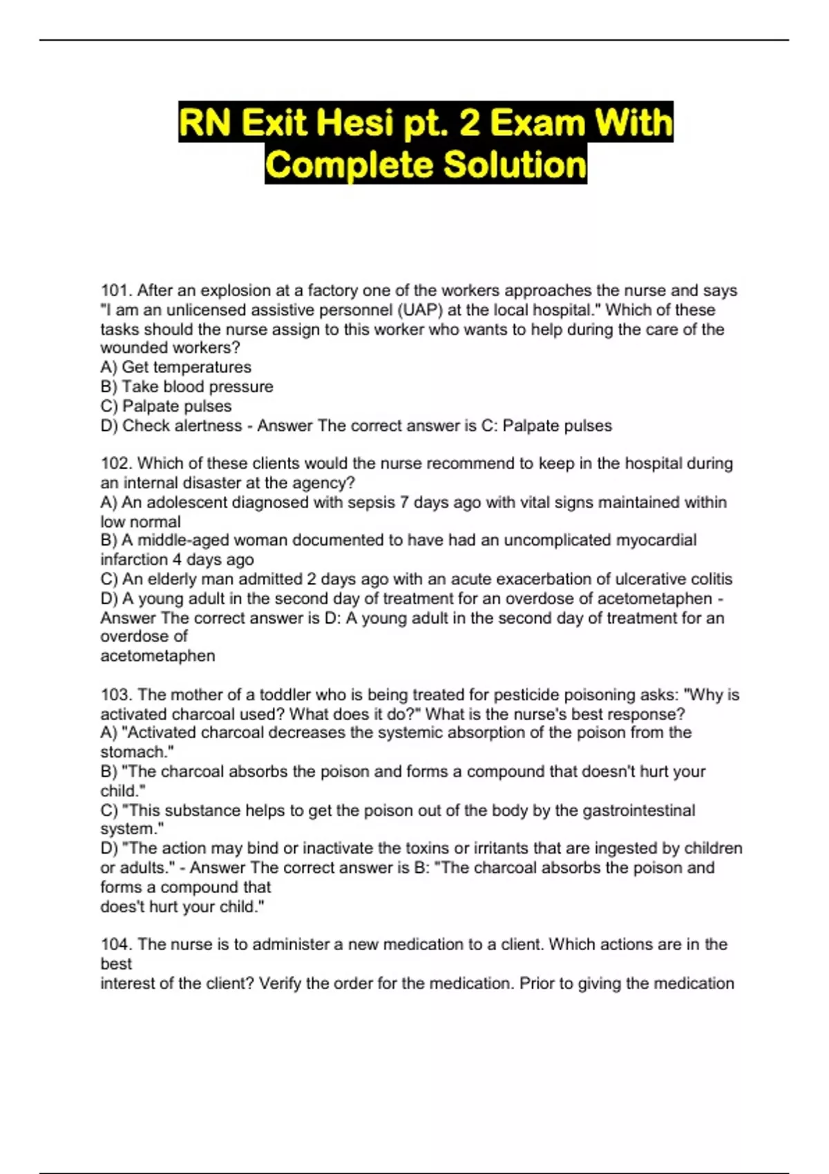RN Exit Hesi pt. 2 Exam With Complete Solution