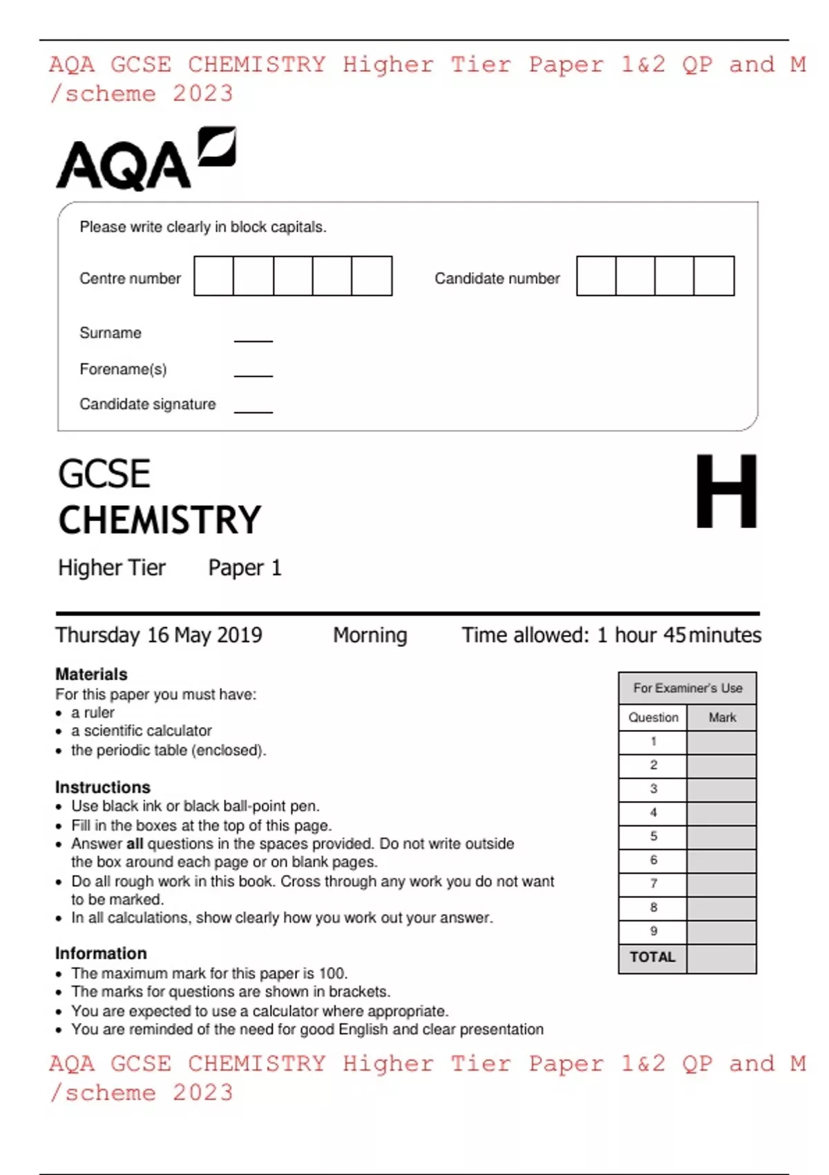 AQA GCSE CHEMISTRY Higher Tier Paper 1&2 QP and M